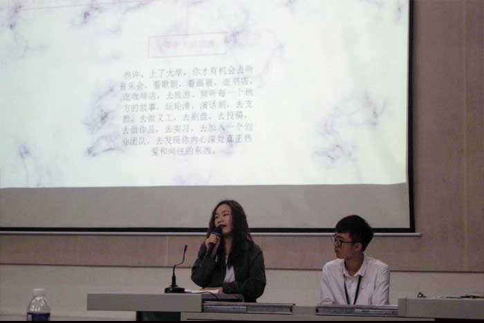 17级视觉传达1707班陈卓同学针对大一新生,提出要在大一学年学会收集国内外优秀作品,培养审美能力,多参加课外活动开拓视野,不因为娱乐而荒废学业