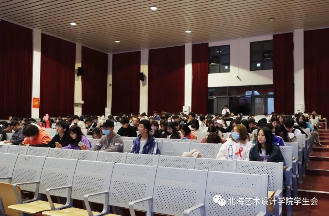 2020年12月1日,由北海艺术设计学院主办、校团委青年志愿者协会承办的世界艾滋病日防艾宣传主题活动正式拉开序幕。相关的摆摊宣传活动于东校区图书馆、东校区学生公寓二栋楼下、西校区食堂门口、西校区大礼堂门口、11栋女生宿舍楼下进行。艾滋病知识讲座于当日19:30在西校区大礼堂进行。