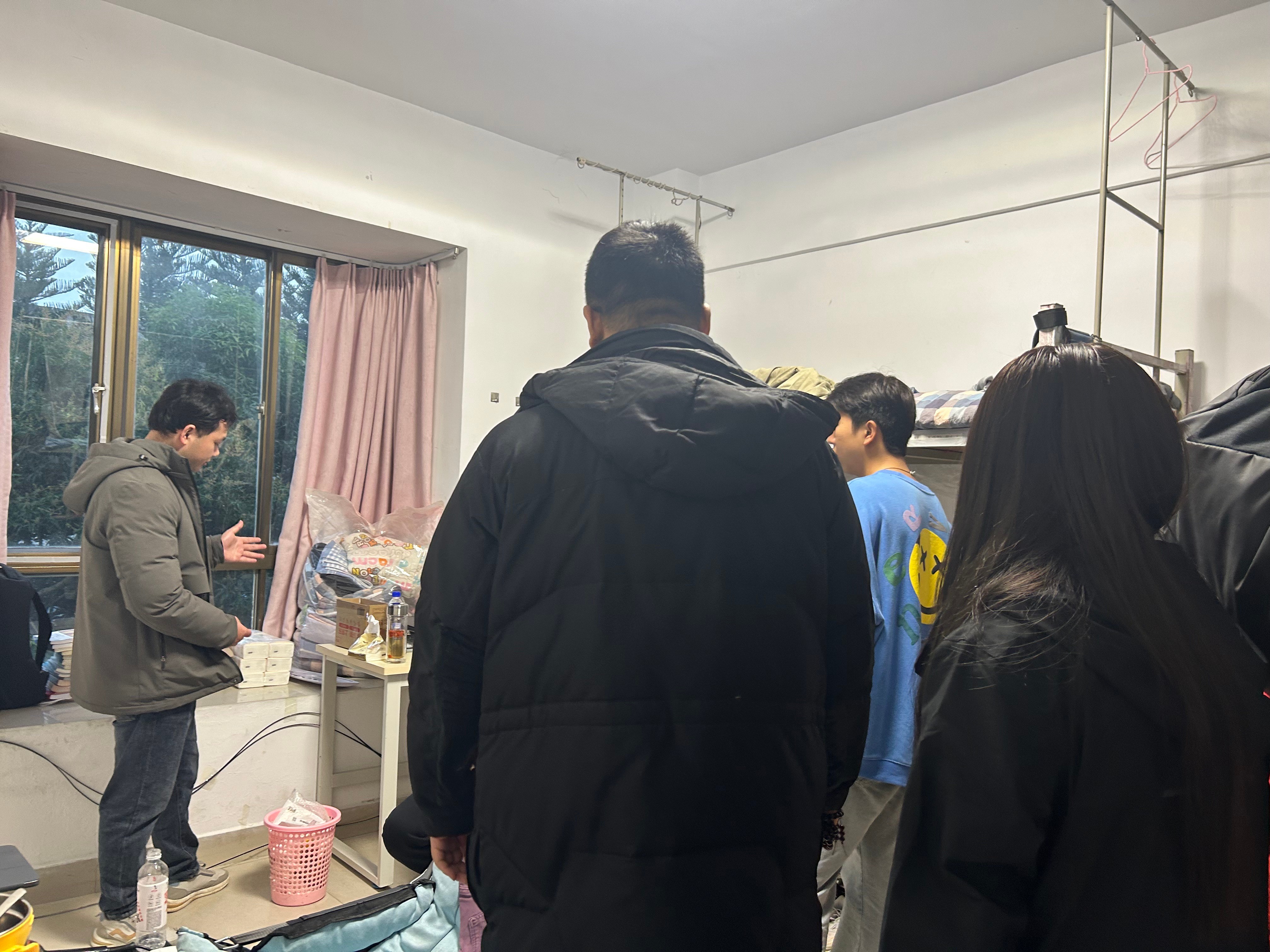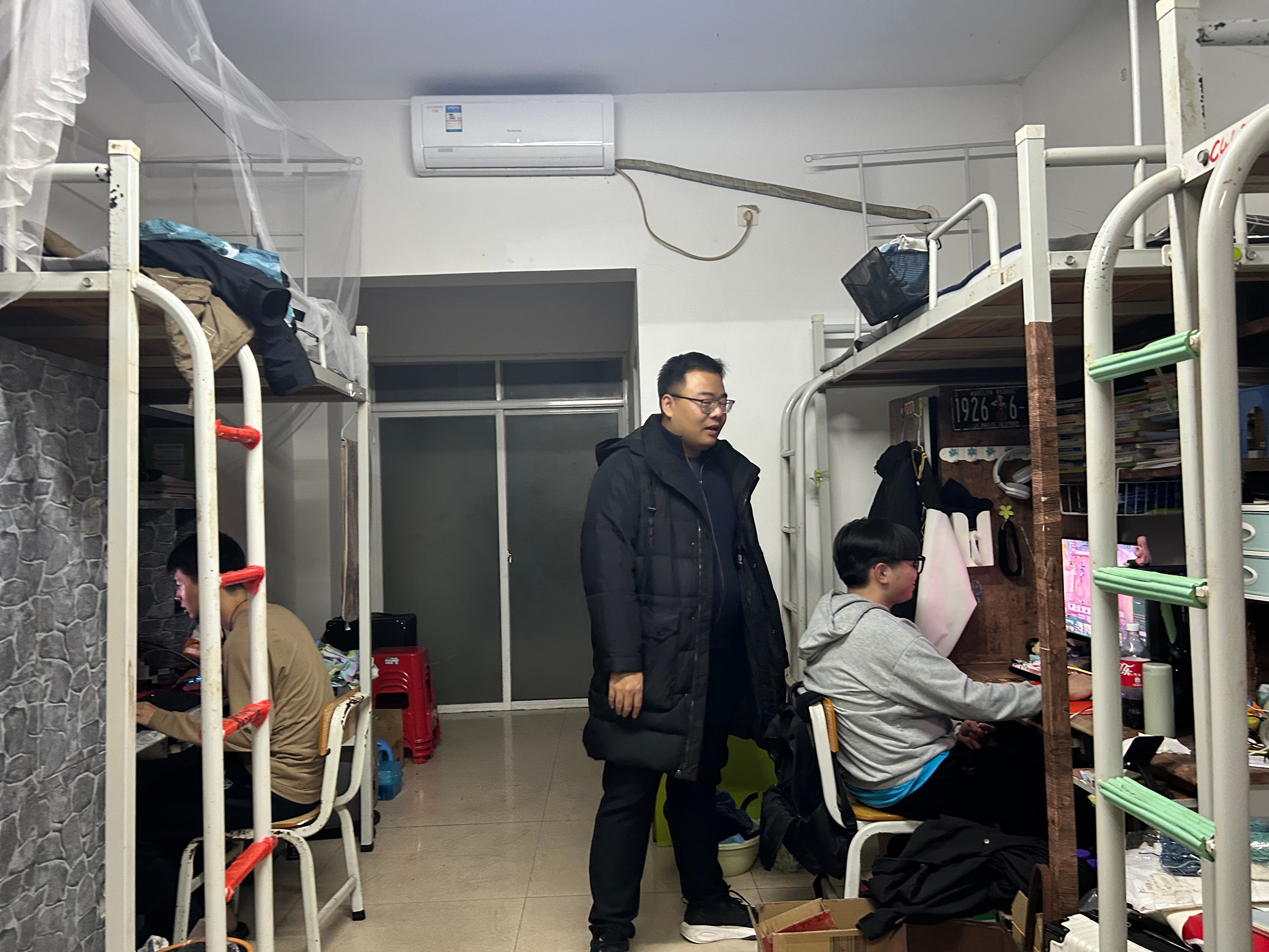 走访过程中,老师们首先仔细检查各个宿舍的卫生状况叮嘱学生做好每日卫生清洁工作,保持宿舍干净整洁,鼓励同学们相互包容、相互理解,遇到问题及时沟通解决,共同打造和谐温馨的宿舍家园。此外,还对宿舍进行了全面的消防隐患和安全隐患排查,对于发现的诸如个别宿舍灯坏了等问题,当场提醒同学们及时报修后勤部门,并要求相关部门尽快处理,确保同学们的生活学习不受影响。