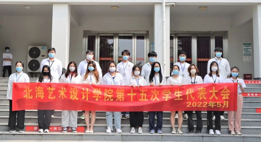 2022年5月21日,北海艺术设计学院第十五次学生代表大会在伦理楼107举行,各院系215名学生代表齐聚一堂。校党委副书记、副校长彭仁,校团委书记唐良春,校团委副书记宋慧敏,动画与传媒学院分团委书记巴瑞斌,设计艺术学院分团委书记王慧,建筑与环境艺术学院分团委书记雷勇,人文教育学院分团委副书记史晓菲,美术学院分团委老师许荣军共同出席了此次大会。