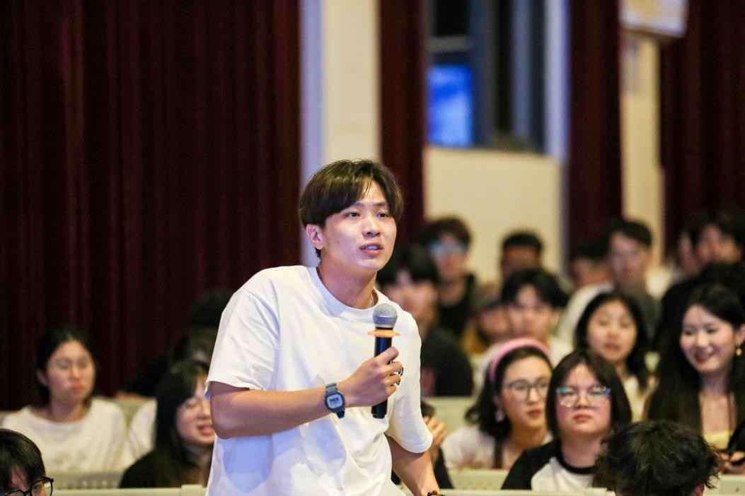 随后是学生提问环节,王照伟院长针对学生提出的问题进行答疑解惑,为2021级学生能顺利上京开展学习生活进行教育和引导。最后,王照伟院长祝愿同学们一切顺利,学业有成。(刘杰/摄)