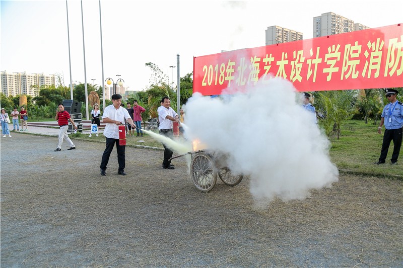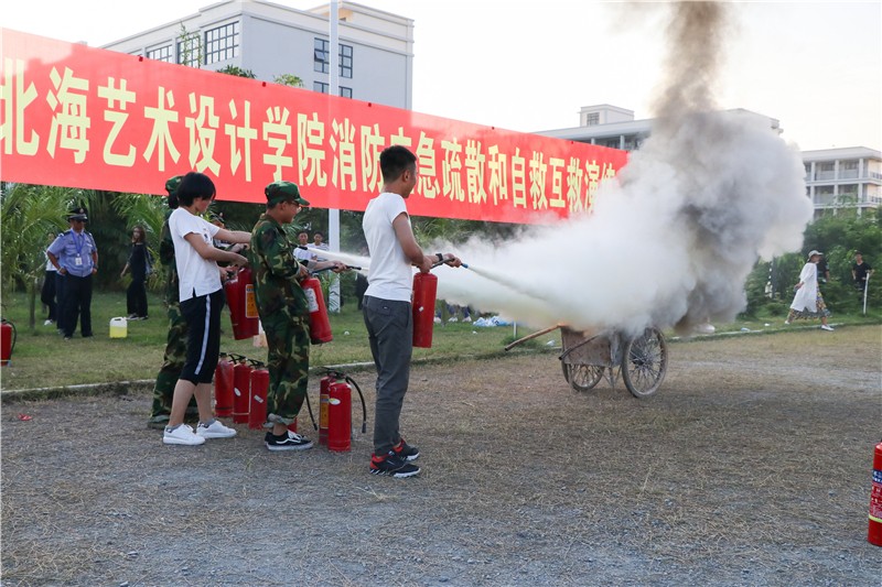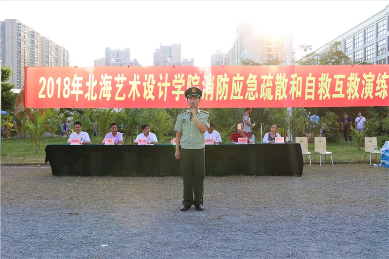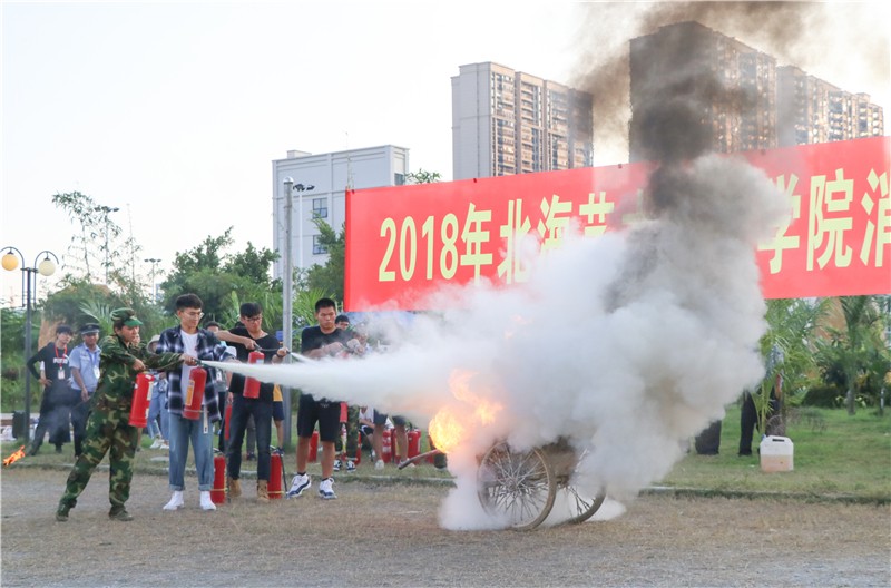 参加此次演练的单位和人员有北海市银海区消防大队电建渔港中队,学校各职能部门、各二级学院领导老师,以及全校学生。