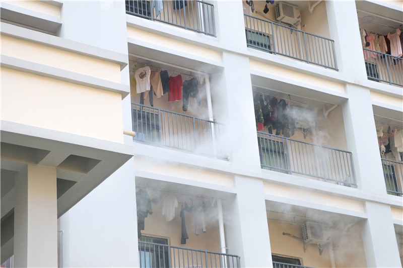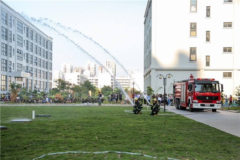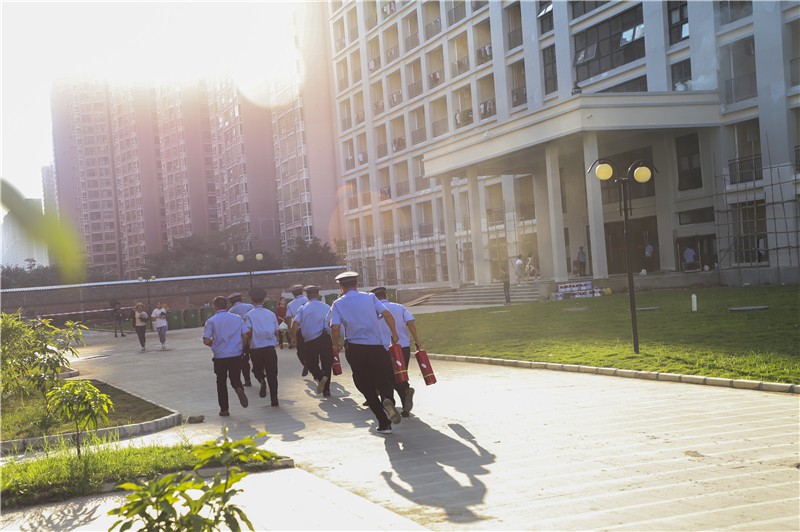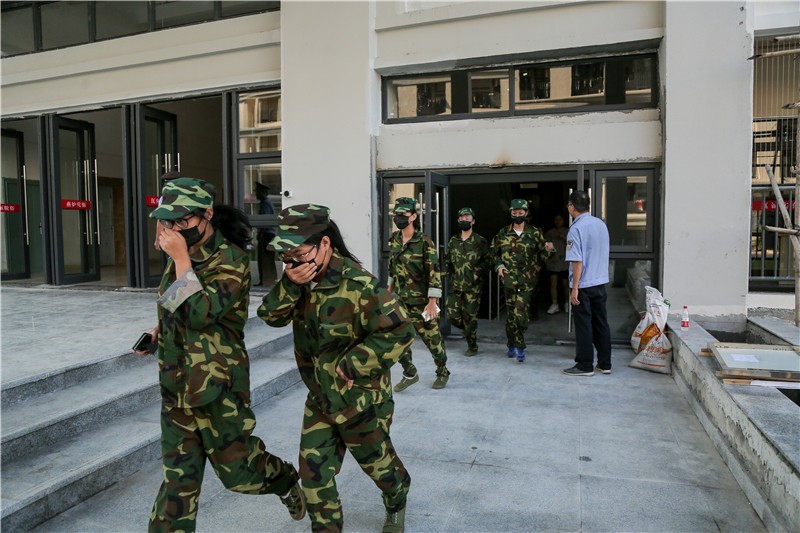 下午五点整,烈日当空,消防警报拉响,宿舍楼内冒出浓烈的白烟。保安人员立即赶往现场实施疏散和救援措施,学生们从宿舍楼内快速撤离,在老师和宿管员的指导下,同学们捂紧口鼻,以较规范的逃离姿势,有秩序的撤离火场。此时,救护人员及时赶到现场搜救被困人员。整个疏散过程,各部门紧密配合,所有人员在规定时间内撤离到安全救助点。
