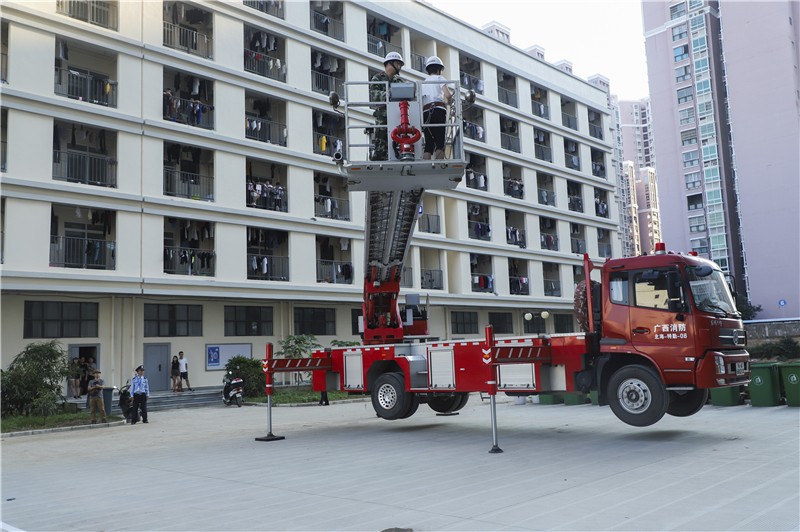 银海区消防大队电建渔港中队两辆消防车及时抵达现场,三楼1名学生被困,消防官兵携带担架、切割机等防护破拆装备营救,32米云梯消防车缓缓升起通道向火层靠近营救被困人员。消防大队员和我校保安队员利用水枪喷水以及灭火器灭火,火灾现场得到有效控制。