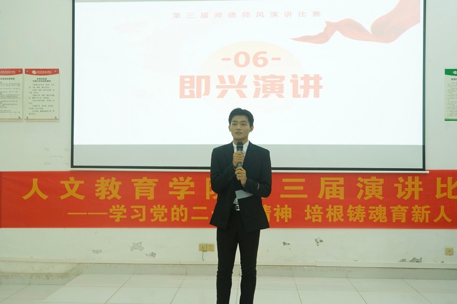 为进一步推动教学实践改革,展现我院学生风采,营造尊师重教氛围,培养和激发学生理想信念,加强专业角色认知,2022年12月2日,人文教育学院“学习党的二十大精神培根铸魂育新人”第三届师德师风演讲比赛决赛于东校区多媒体2教室顺利举行。