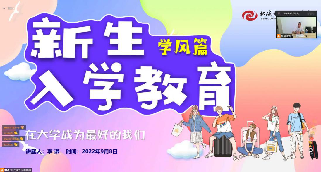 2022年9月8日,人文教育学院副院长李谦为我院2022级新生带来了一场题为《新生入学教育——学风篇》线上主题讲座。讲座由人文教育学院党总支副书记邓欢主持。