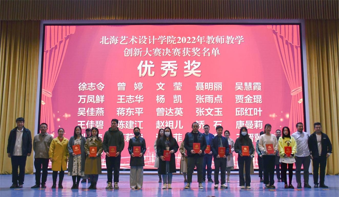 12月9日,北海艺术设计学院2022年教师教学创新大赛颁奖典礼在我校大礼堂隆重举行。学校全体校领导、全体教师参加了本次典礼。