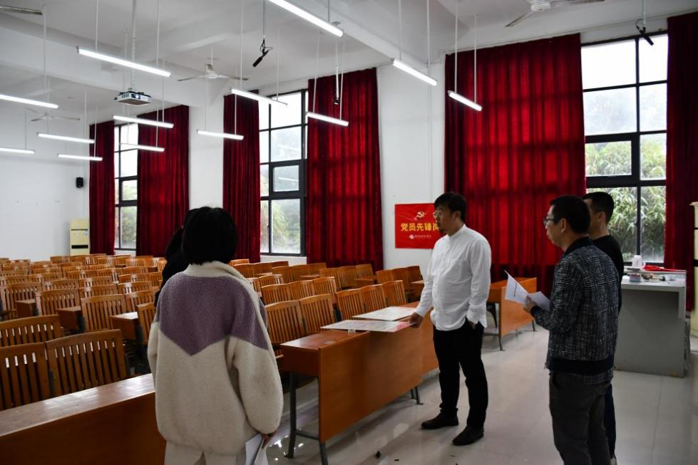 2023年2月10日,我校开展了春季学期开学教学场所(实验室、教室)安全大检查。根据学校各部门的管理职责,教务处对主要检查范围进行了明确的人员分工。上午8:00,教务处处长、实验教学中心主任、设备与信息处主任等分别带领各二级学院负责人,对全校教学场所进行安全检查工作。