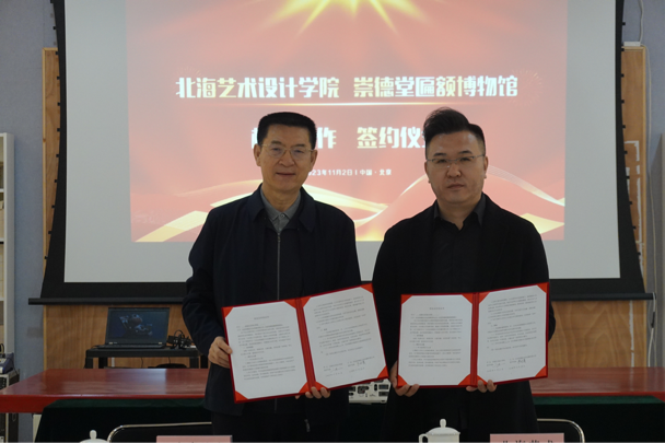 11月2日,北海艺术设计学院美术学院与崇德堂匾额博物馆的馆校合作协议在北京签订。此次馆校合作将有力推动北海艺术设计学院美术学院的专业考察、就业实习等工作的开展,促进文博事业在中国传统文化上的传承与创新。