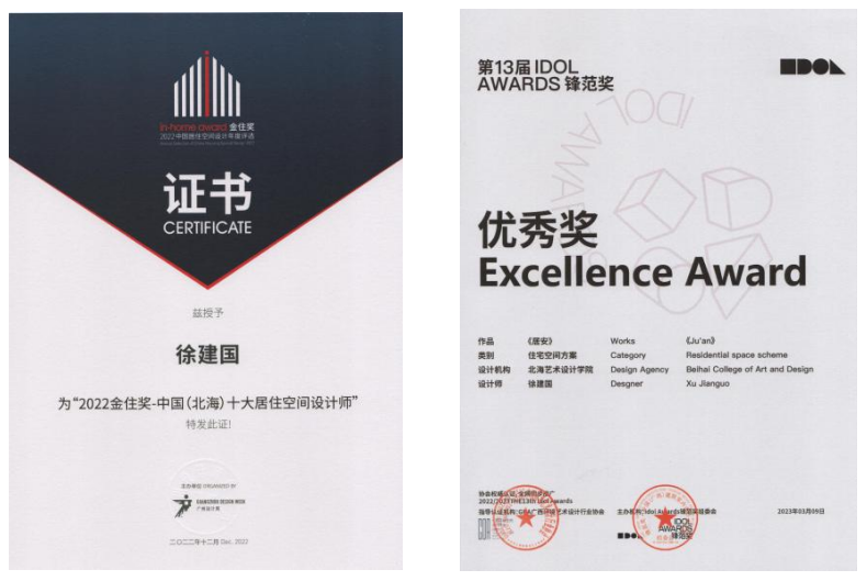 实践育人,教学相长,亲自带领,鼓励学生积极参与校企合作教学,帮助学生提高实践能力和学习效果。从教以来,徐建国老师多次指导学生参加大学生创新创业训练项目和实践学习,收获荣誉多项。如:2021年,指导学生陈金完成自治区级2018年大学生创新创业训练项目《绿色植物背景墙设计制作创意工作室》,项目编号201813524029;指导学生向奇完成2019年国家级大学生创新创业训练项目《奇点智能化设计工作室》,项目编号201913524005。2017年,指导学生吴清清参加第五届NCDA大赛,荣获全国总决赛二等奖;2021年,指导学生陈孔雯参加第九届全国高校数字艺术设计大赛,荣获全国总决赛三等奖;2022年,指导学生张芷琪参加全国大中学生第11届海洋文化创意设计大赛,荣获佳作奖;同年,指导学生姚永康、关书晓参加学院杯中国室内与环境设计大赛,荣获室内组优秀奖。