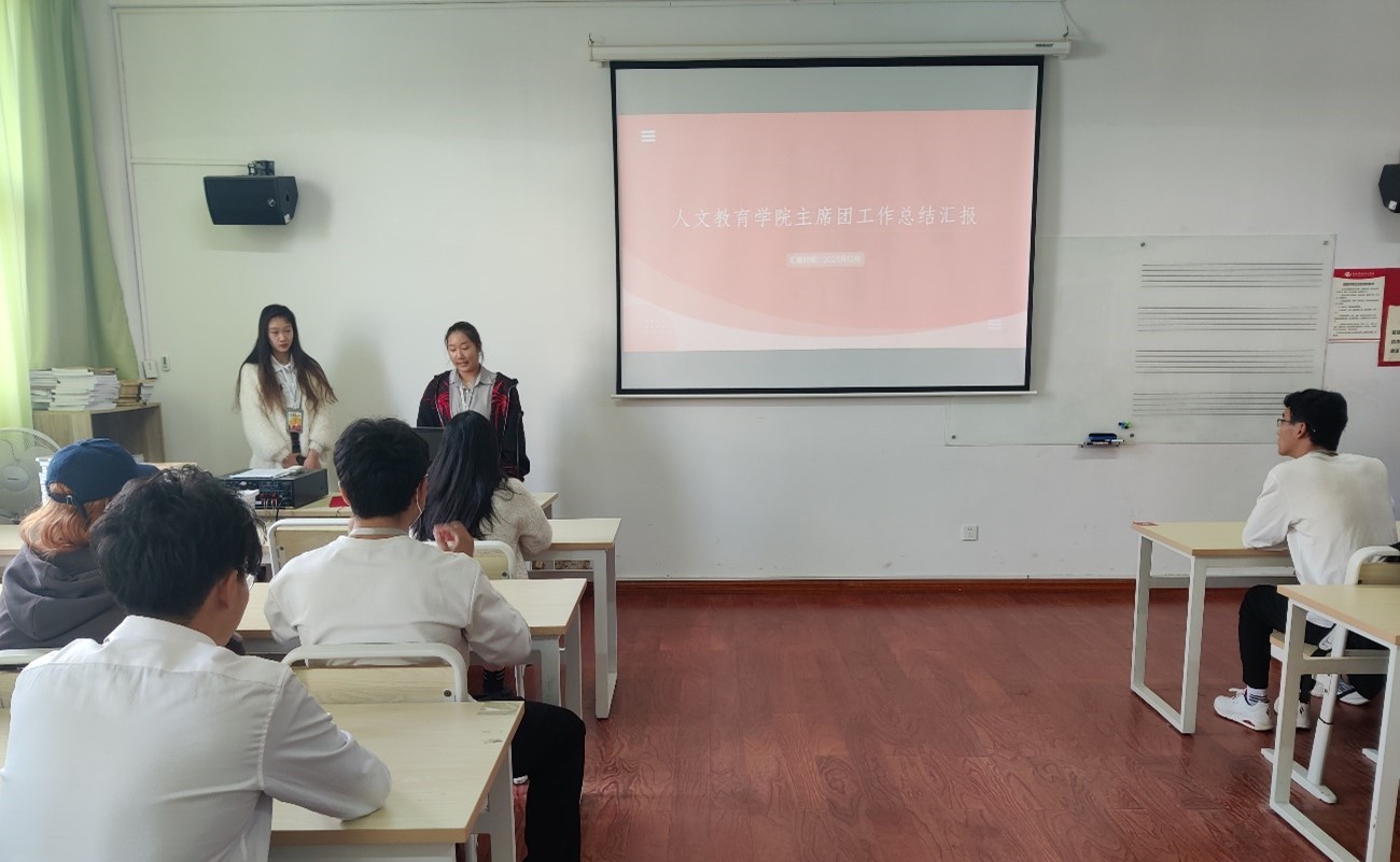 2023年1月3日, 2023-2024学年第一学期人文教育学院分团委总结大会在艺术楼311室召开。会议主要任务是总结本学期分团委工作和规划下学期分团委工作。分团委书记史晓菲老师及所有学生干部出席会议,会议由分团委干部赵美琪主持。