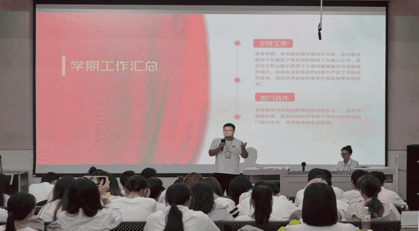 在部门年度总结环节,学生干部共同回顾了过去一年的收获与不足。他们表示,人文教育学院分团委在过去的一年里,紧紧围绕学生成长成才这一核心任务,积极开展各类学术、文化、体育等活动,有效提升了学生的综合素质,活跃了校园文化氛围。同时各部门负责人分别指出了部门工作中存在的问题,为新一届部门负责人管理工作奠定了良好基础。