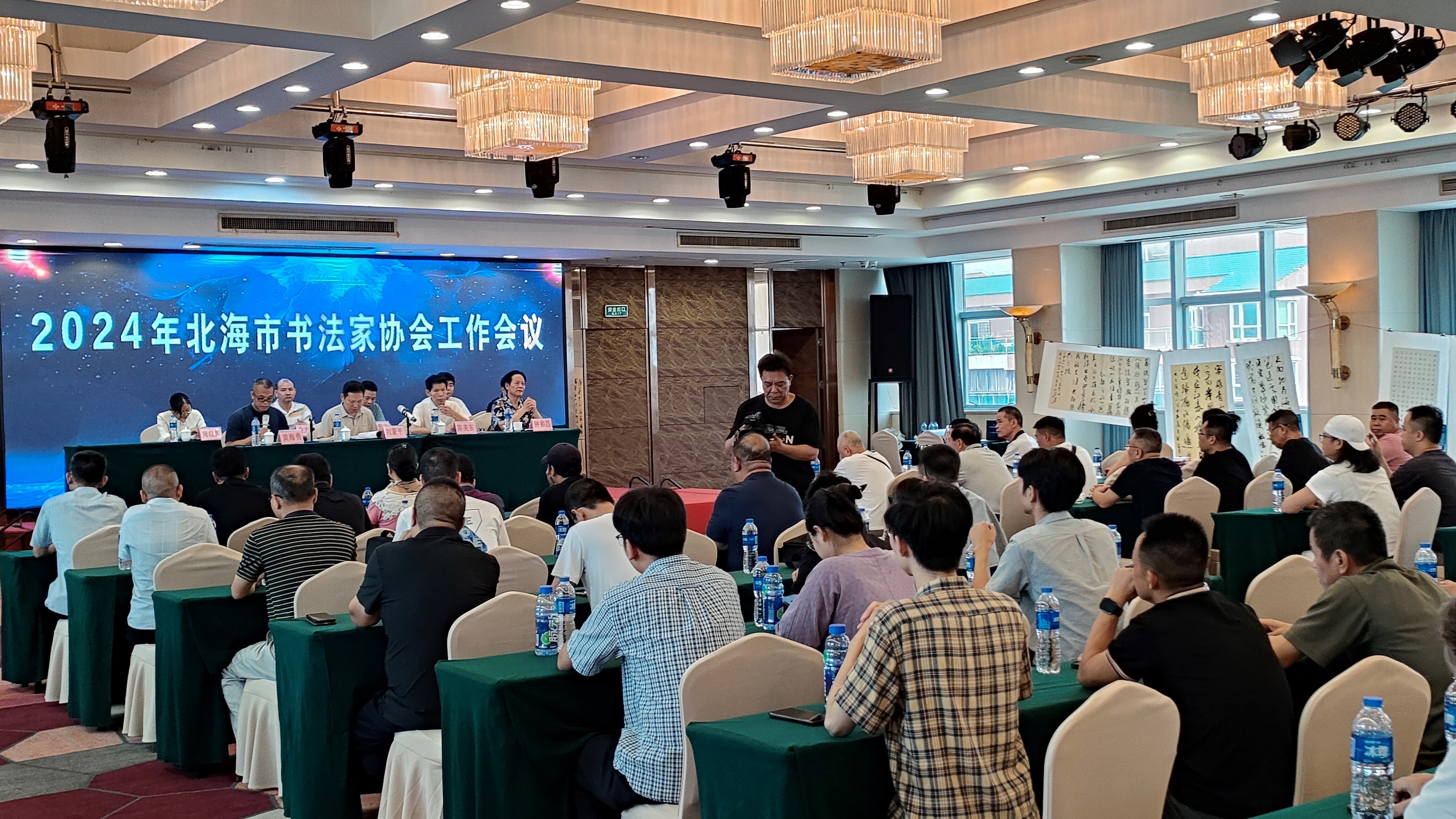 为进一步促进北海市书法发展,北海市书协于629日下午举办2024年北海市书法家协会工作会议暨“龙游墨海”大型书法义卖义拍活动。广西书协主席杨科云,北海市文联党组书记、主席刘蒙平,北海市书协主席陈美东以及包括书法学院教师在内等120余名北海书协会员出席活动。