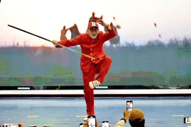 在讲座即将落下帷幕之际,全场气氛达到了最高潮。章金莱老师金箍棒在手,英姿飒爽,瞬间点燃了所有人的热情。表演中,章老师不仅展现了高超的武术技巧,更通过细腻的表情和肢体语言,将孙悟空复杂的性格特征刻画得淋漓尽致,让观众仿佛身临其境,亲眼见证了孙悟空从顽皮的石猴成长为一代英雄的传奇历程。这一刻,全场响起了经久不息的掌声,不仅是对章老师精湛演技的赞叹,更是对《西游记》这部经典作品以及其中所蕴含的深厚文化底蕴的致敬。