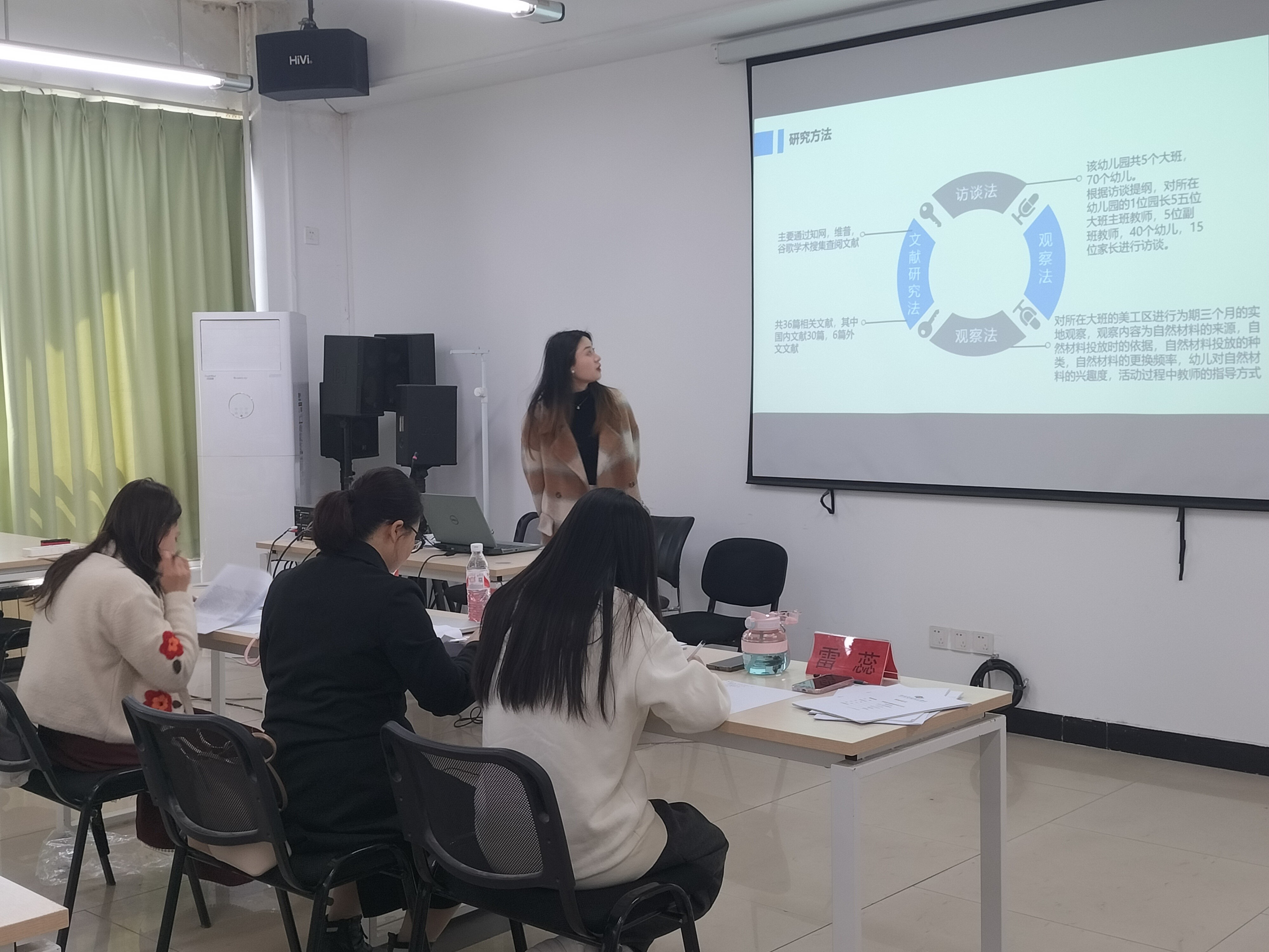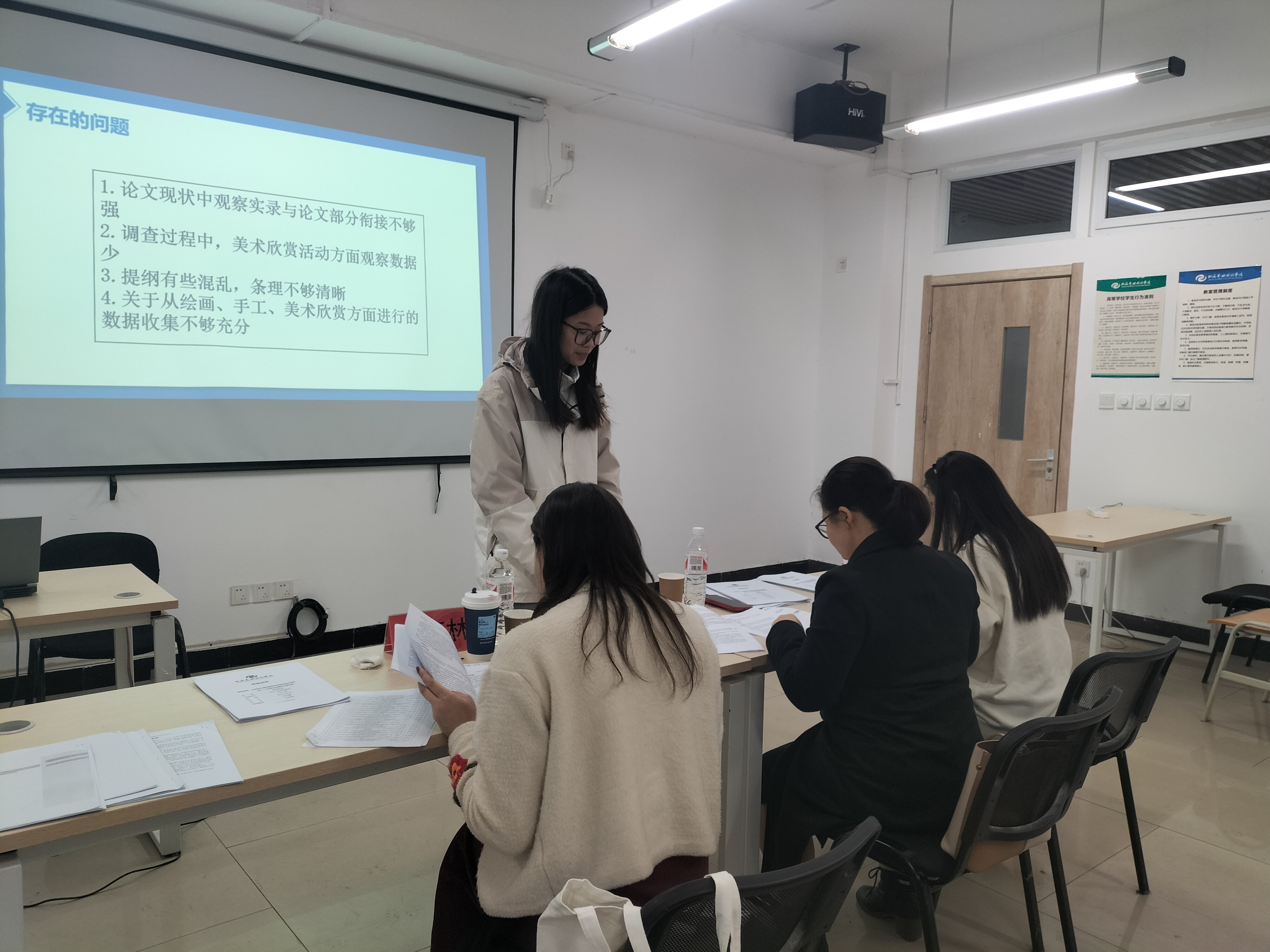 中期答辩现场,艺术教育专业和学前教育专业每一位学生,分别从目前的研究进展、已完成情况、遇到的问题以及下一步的计划等方面进行汇报。他们的研究内容密切联系专业实践,深究行业中遇到的各类教育方法创新、课程设计优化、教师教育活动指导能力提升等多个领域,展现出学生们对专业领域的深入关注和积极的探索精神。