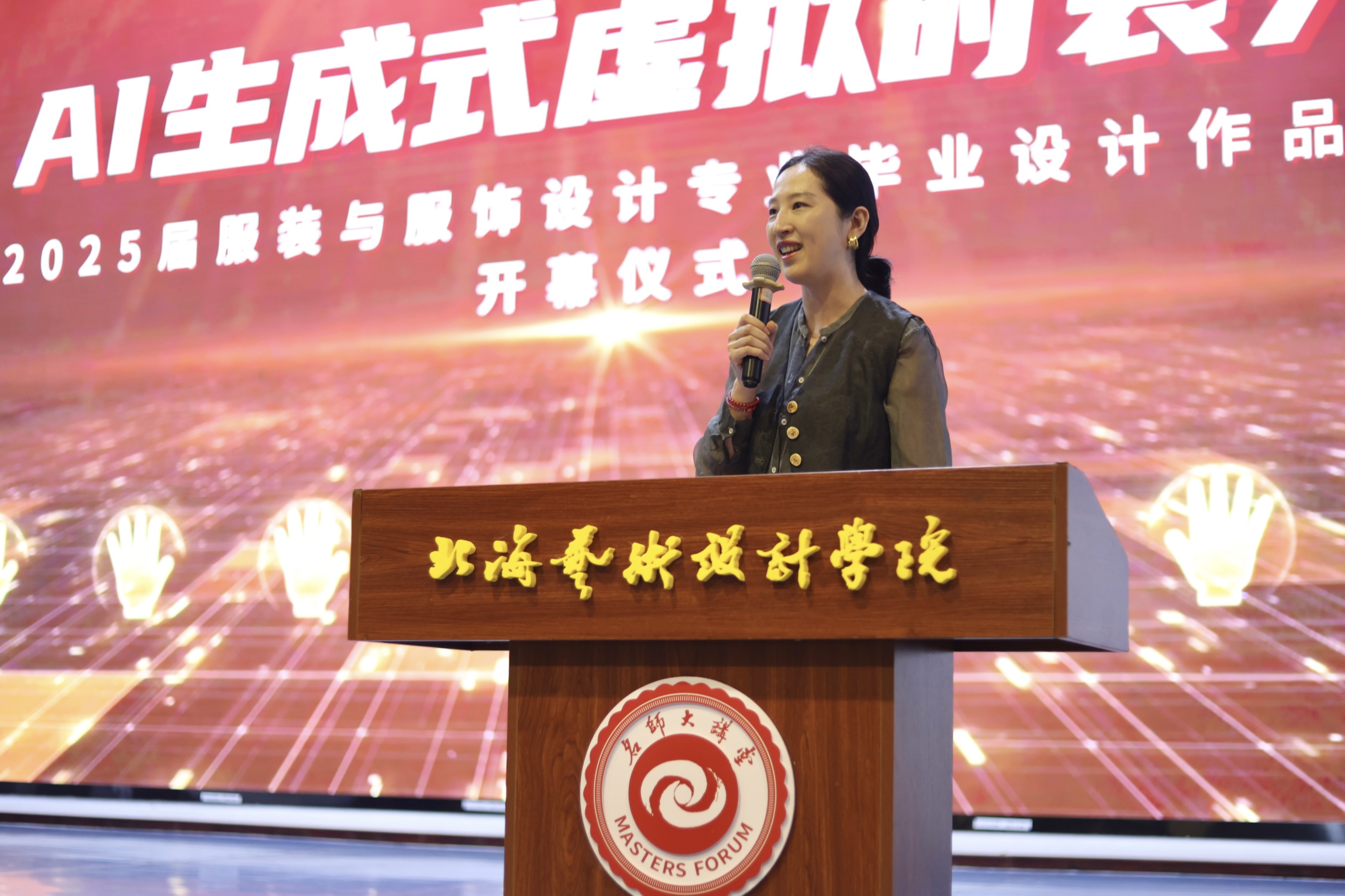 服装学院常务副院长廖汀表示,服装学院一直在人工智能赋能服装设计领域上进行教学改革探索。将人工智能、虚拟现实等前沿技术深度融入服装设计教学,从虚拟面料研发到数字时装设计,从服装3D建模到元宇宙秀场搭建,真正实现了从传统设计思维向数字化创新思维的跨越。她强调,只有紧跟时代步伐,将前沿科技与专业教育深度融合,才能培养出适应未来时尚产业发展的创新型人才。