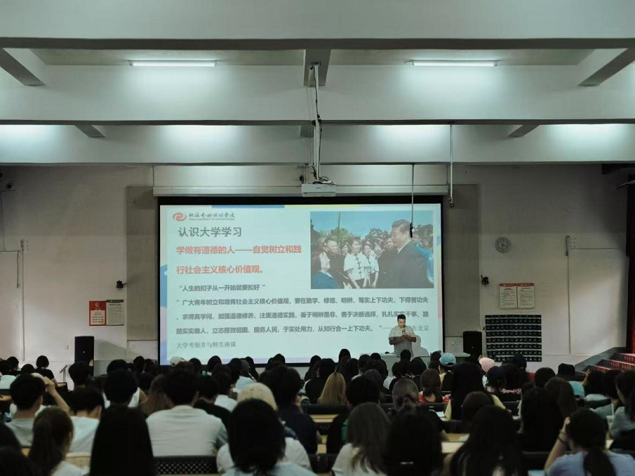 学院李谦副院长通过讲授《学业指导与课堂管理》,帮助新生们尽快适 应大学生活,明确学习方向,掌握科学方法,解决学业核心问题。