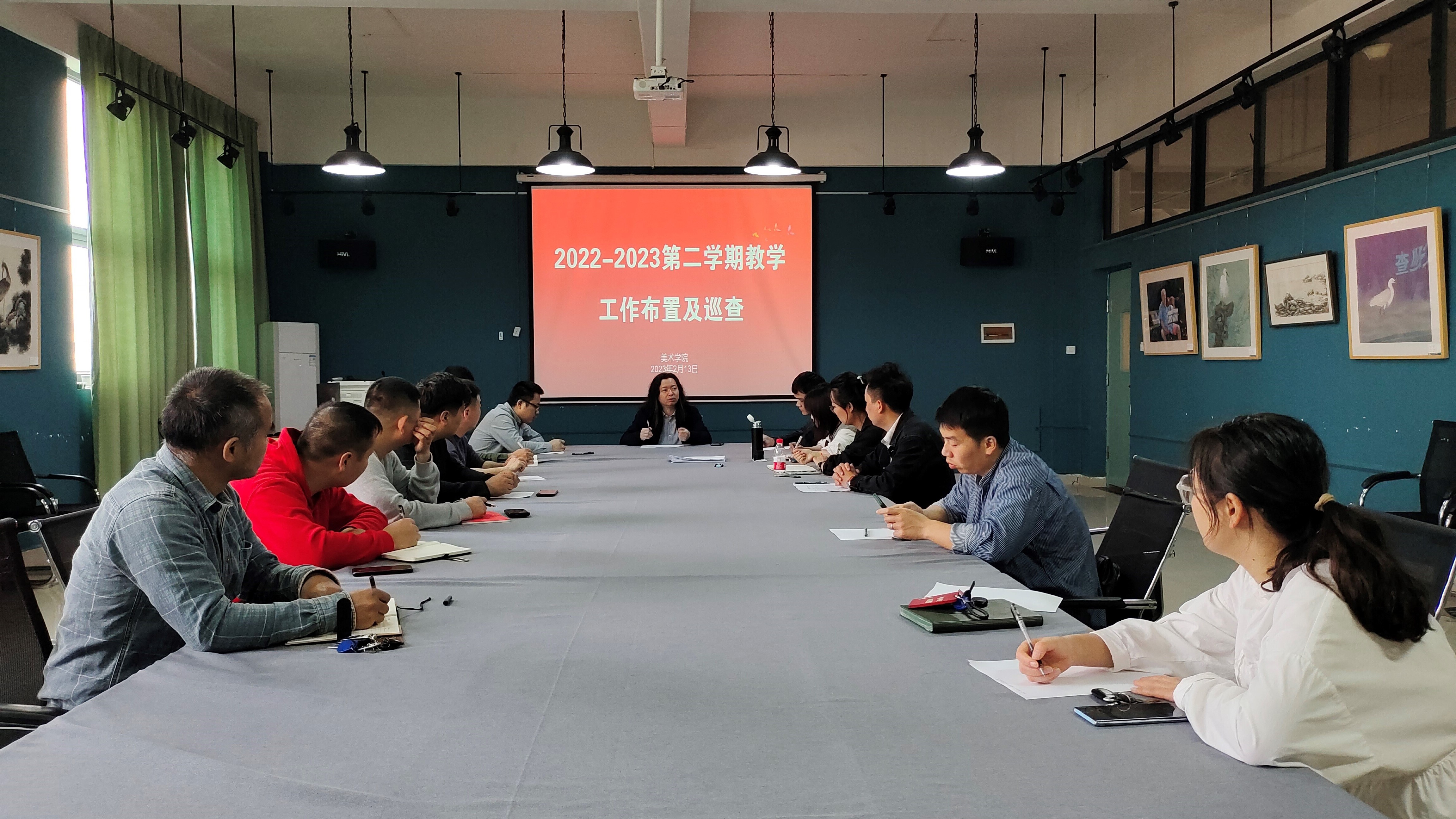 巡查结束后,胡胜副校长召开了美术学院教学工作布置会议,学院各教学单位负责人参加了会议。会上,胡胜副校长强调要深入学习宣传贯彻党的二十大精神,切实把学院广大党员干部和师生员工的思想统一到党的二十大精神上来,深刻领悟党的二十大的主题、主要成果和重大意义。