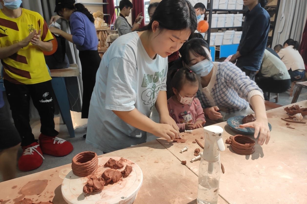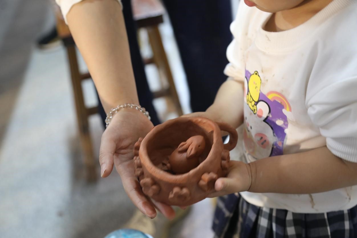 本次校企合作主题活动由美术学院副院长金凯婧策划,雕塑教研室主任黄寿宁主持实施。雕塑专业教师冯鑫、于文成老师授课,另有雕塑专业和摄影专业学生8名学生参与此次活动完成实习。课程讲授了陶器的起源、种类、制作等小知识,为小朋友打开了陶瓷艺术的宝库,增强了小朋友对陶器的认识和兴趣,对其在成长过程中进一步了解历史文化知识有一定的助力。