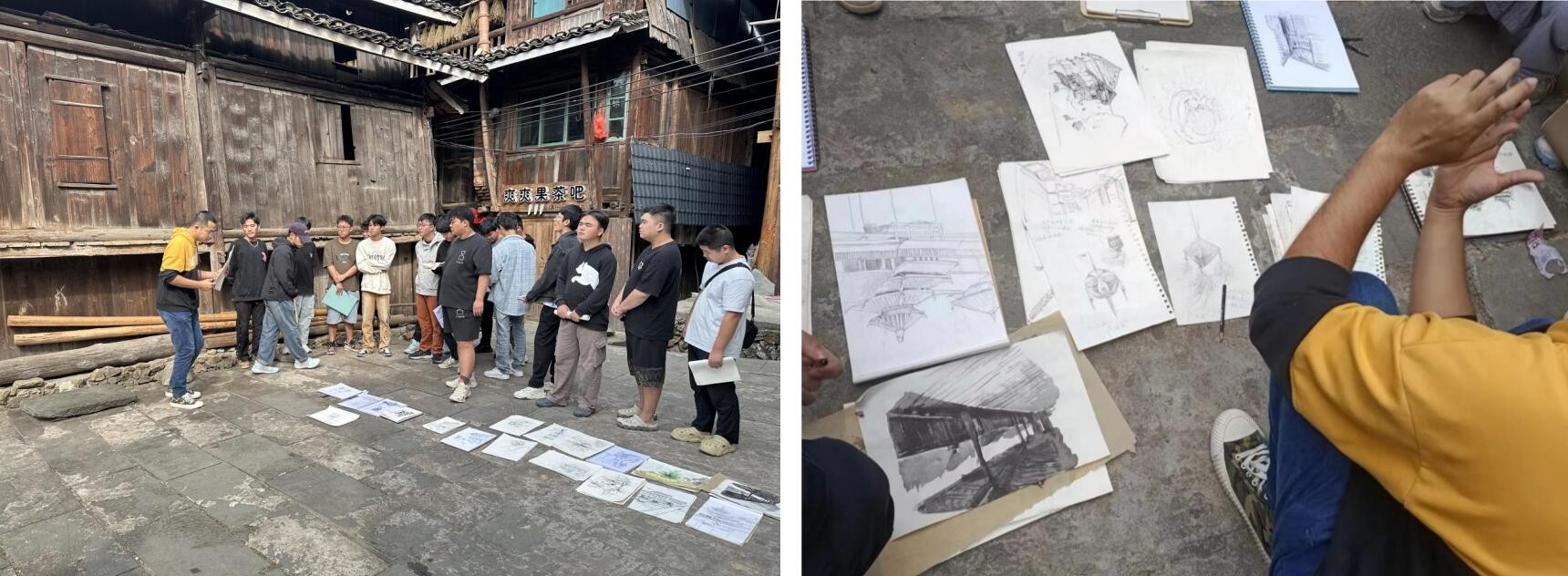 此次采风由美术学院副院长金凯婧、雕塑专业教师于文成指导,旨在带领学生们通过对当地地理环境风貌、建筑地域特色、人文民俗风情以及非遗技艺。同时,通过对当地博物馆的参观考察,将当地特色以速写、纹样、摄影、文创及雕塑设计的方式呈现。此次采风实践不仅使同学们对侗乡少数民族文化艺术有了更深层次的认知,并且为后期的少数民族雕塑、创意思维等课程积累了丰富的素材。