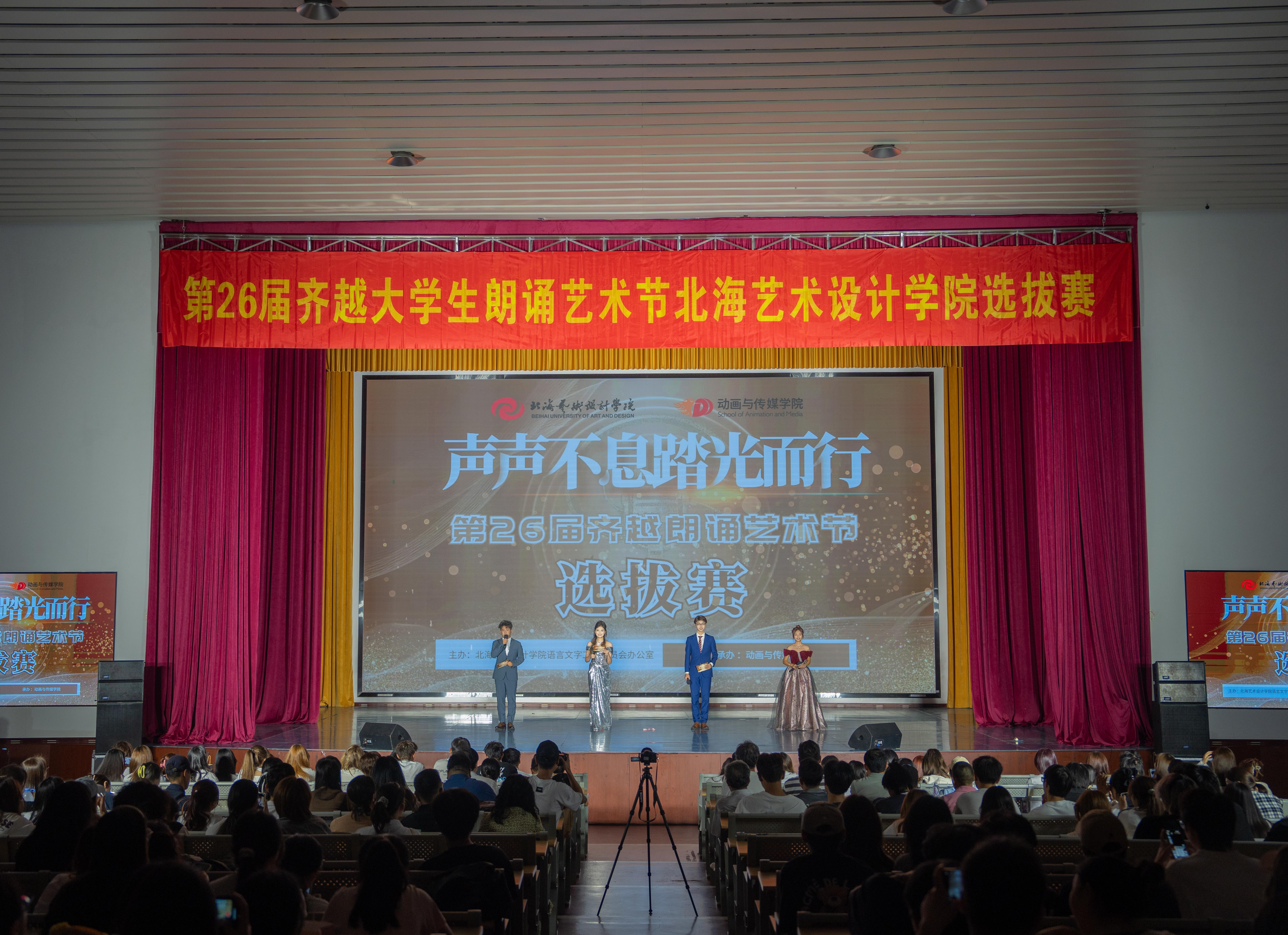 为深入学习贯彻党的二十届三中全会精神,传承发展中华优秀传统文化,鼓励当代青年探索有声艺术的创新表达,奋力推进物质文明和精神文明相协调的现代化。我校于10月13日晚,在西校区大礼堂举行第26届齐越朗诵艺术节暨全国大学生朗诵大会北海艺术设计学院选拔赛。