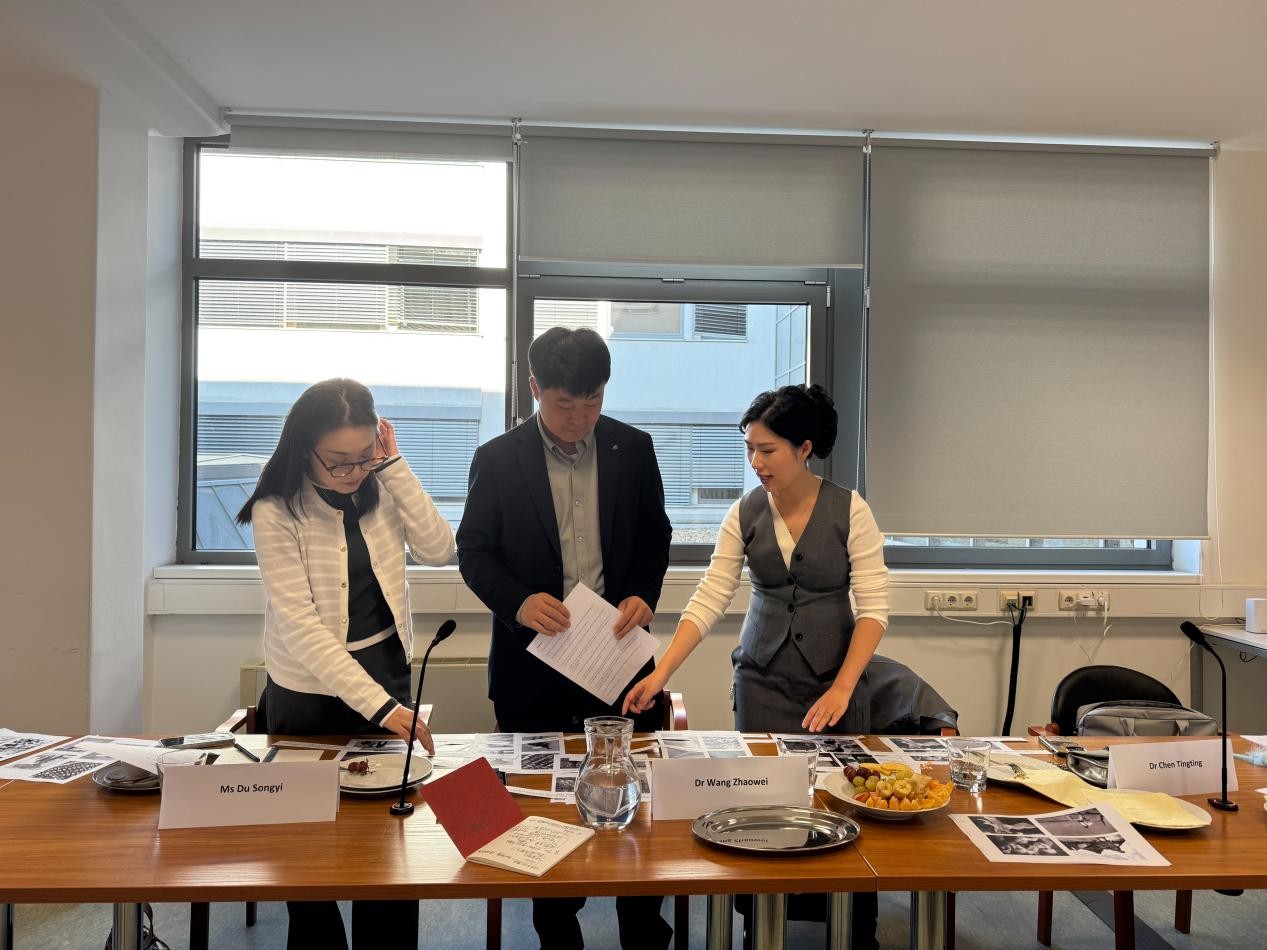 北海艺术设计学院与佩奇大学的学术交流活动中,双方一致认同学术交流对于推动教育国际化进程与提升艺术设计教育质量的重要作用,并深刻认识跨文化教育交流的深远意义。深入沟通交流过程中,双方不仅分享了各自的教学思想与设计作品,还就艺术设计在不同文化背景下的演进路径进行了深入探讨。通过此次学术交流活动,建筑与环境艺术学院的青年教师们收获了满满的知识和丰富交流体验。活动最后,院长Prof Gabriella Medvegy为王照伟教授颁发了佩奇大学荣誉教授证书,同时为代表团教师办发了访问学者荣誉证书。