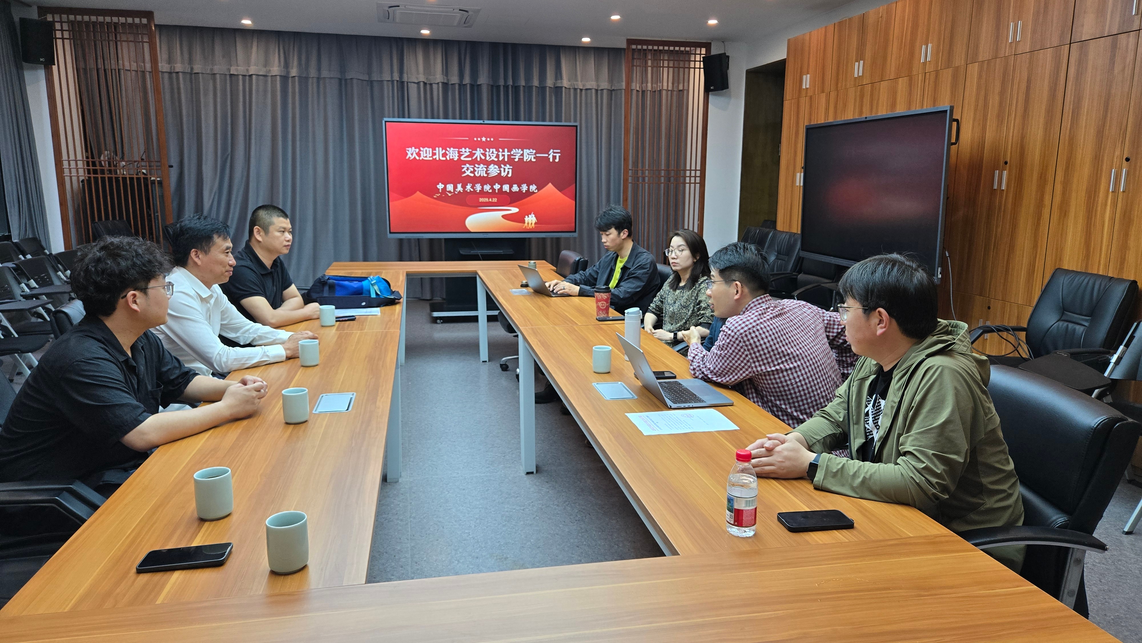 42223日,北海艺术设计学院副校长陶立阳率团赴中国美术学院开展本科人才培养方案调研,围绕中国画专业、摄影专业的本科人才培养模式、专业课程体系构建、师资队伍建设、科研及社会服务、实训教学条件建设、培训教学、校企合作机制创新等资源情况进行考察交流。美术学院副院长李炫勋、殷声及绘画教研室副主任焦为好随行调研。