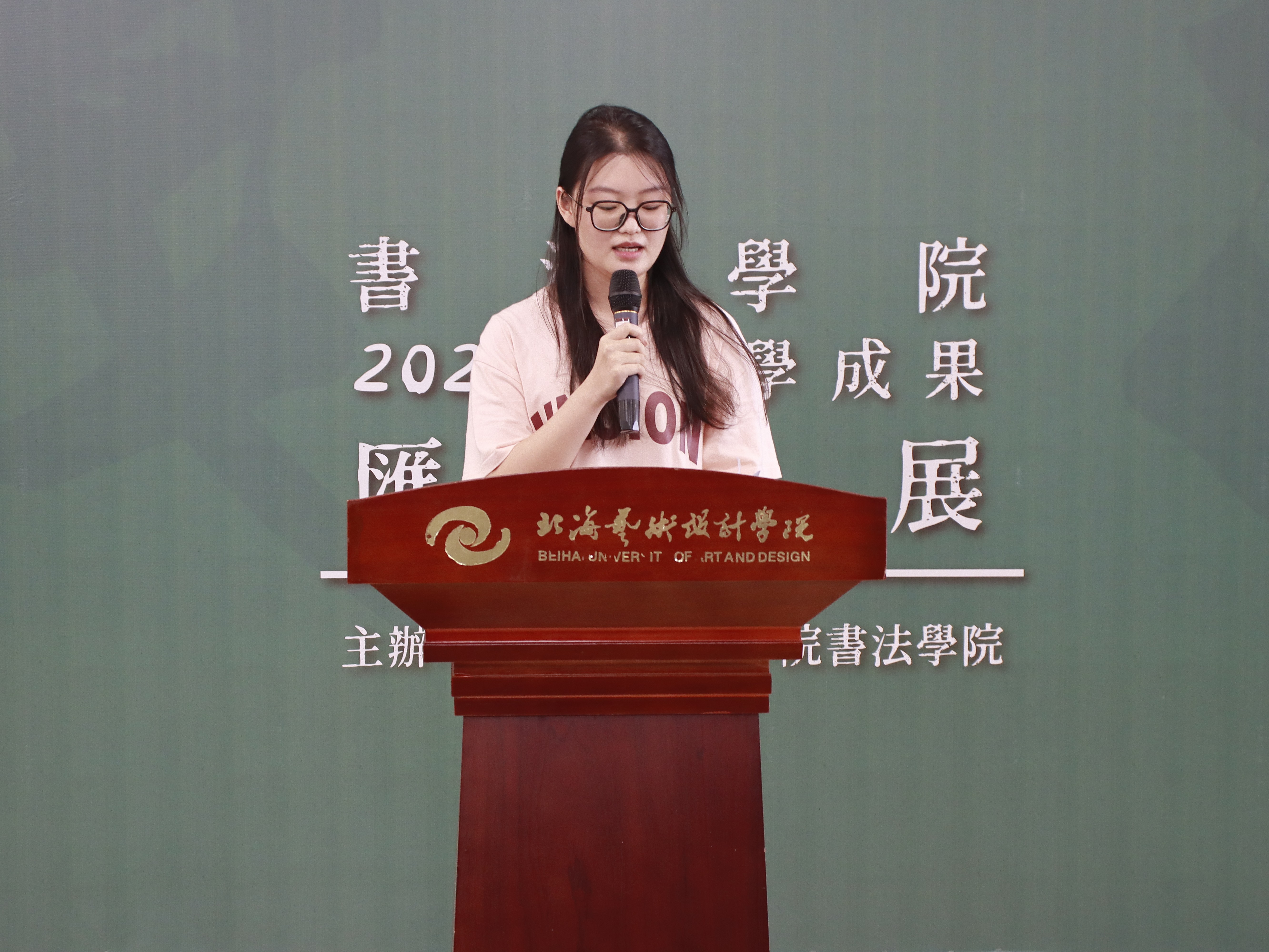 5月20日下午,风华正茂——书法学院2022级教学成果汇报展在艺德楼9楼北展厅顺利开幕。北海艺术设计学院党委副书记陈毅华、书 法学院客座教授张韬、书法学院的主要领导及老师出席本次展览开幕式,共同见证2022级书法学子在专业学习中的重要成果。