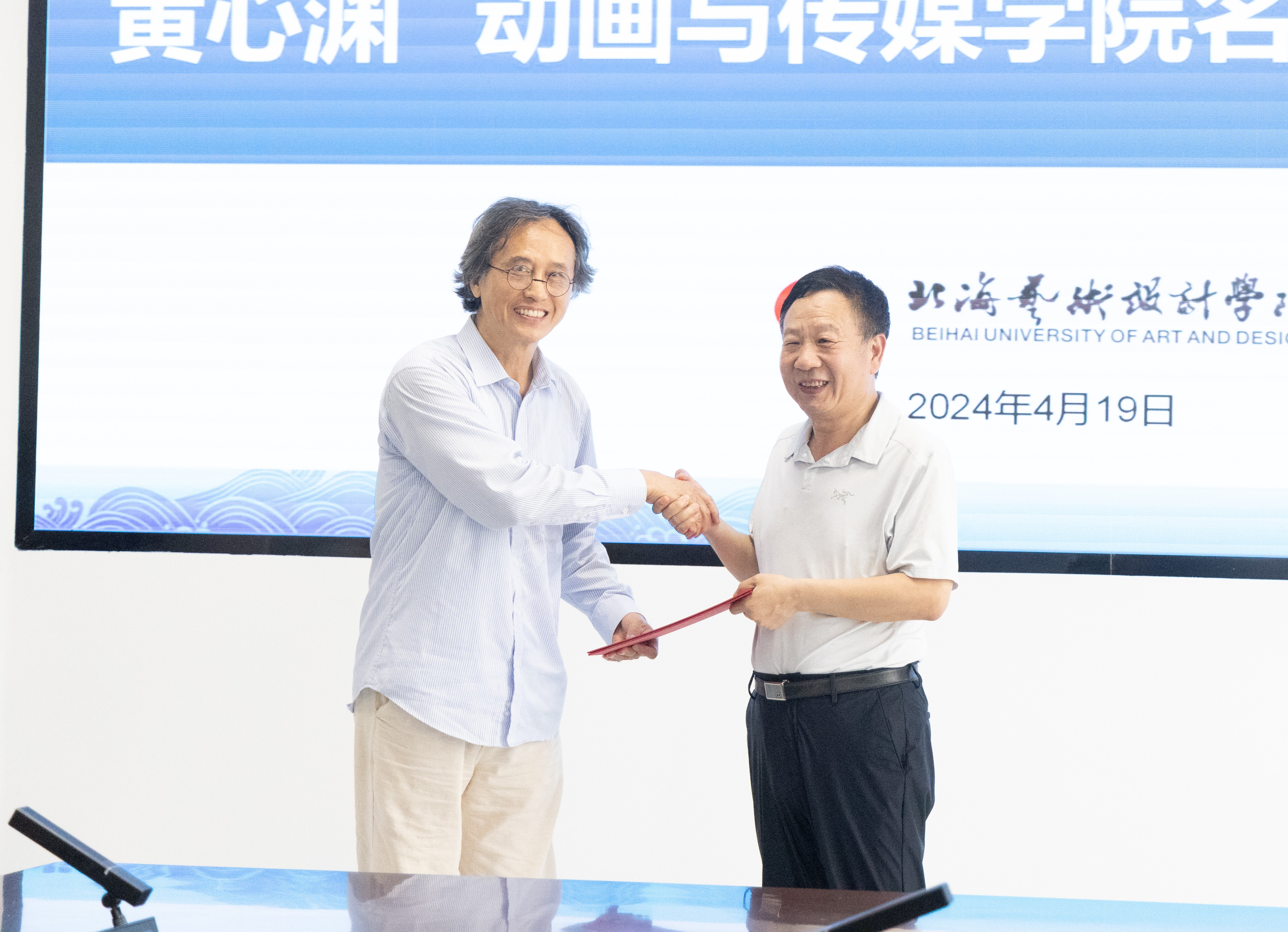 随后,举行黄心渊教授聘任仪式,学校校长卢新华向黄心渊教授颁发聘书,聘任黄心渊教授为我校动画与传媒学院名誉院长。黄心渊教授表示认可学校的办学理念,探讨了学院未来的发展方向,为学院的发展提出了许多具有前瞻性的建议,期待与学院的师生携手共进,不断深入推动各专业建设。