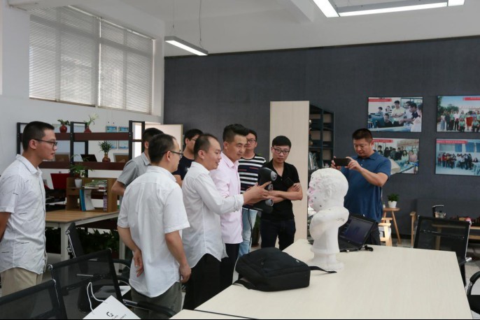 当天下午由学院常务副院长陶立阳带领各企业嘉宾参观了实训室,虞德强主任详细的介绍了各实训室情况,在此过程中企业嘉宾给予实训室建设高度评价,北海勇士三维科技有限公司负责人在数字媒体工作室展示了VR虚拟技术,企业和学院达成初步共识,就项目实训展开合作。