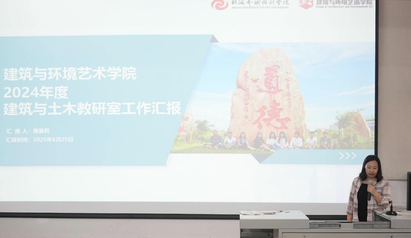 2025年6月25日上午9:30,建筑与环境艺术学院2024-2025学年第二学期期末总结会在公德楼107举行。北海艺术设计学院副校长何煜,纪委书记王照伟,教学质量监控与评估中心主任孙竹青出席会议,建筑与环境艺术学院党政领导、全体教职工参加此次会议,会议由学院综合办公室主任李东瑞主持。