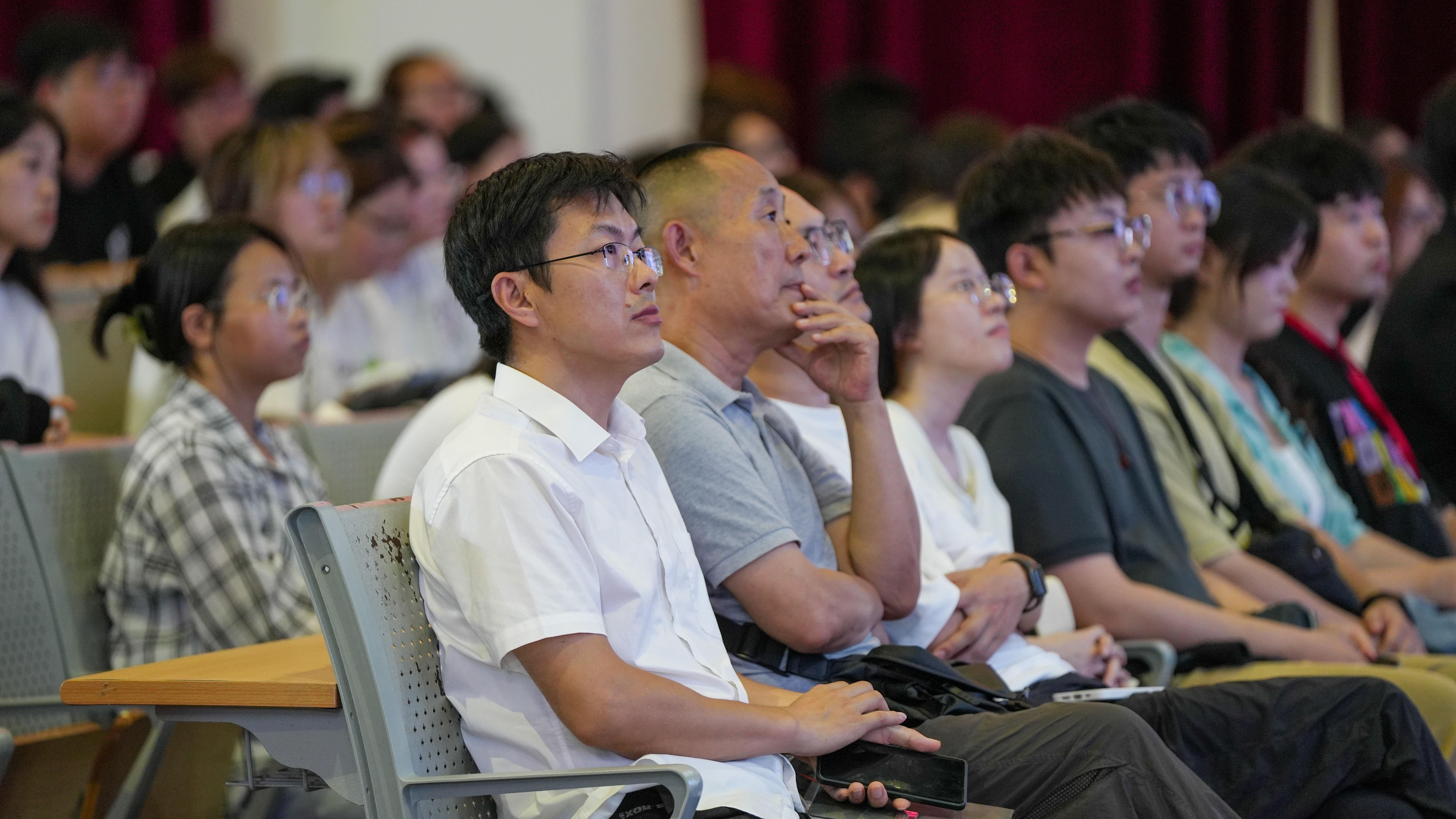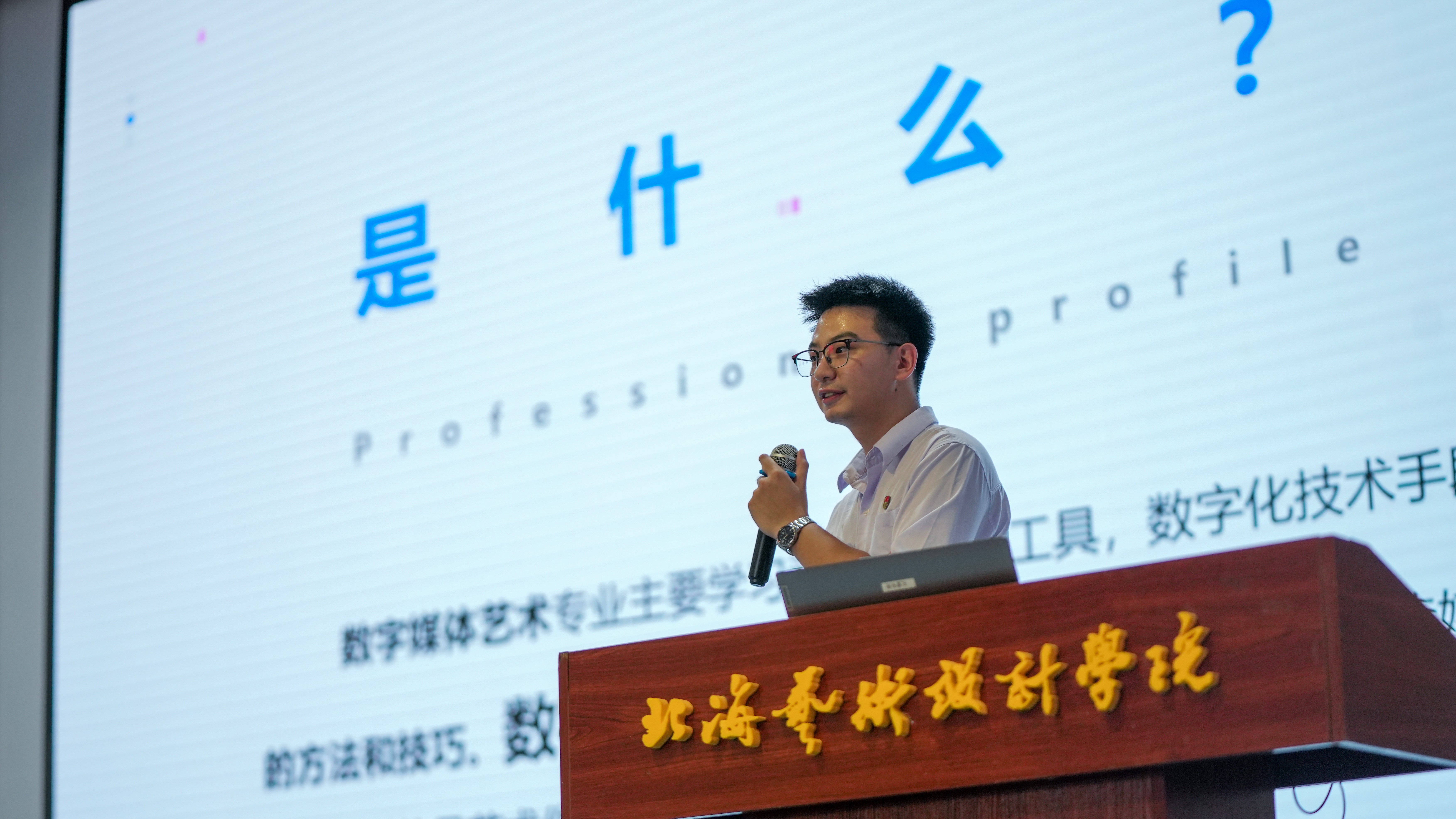 数字媒体艺术专业教研室主任徐相坤详细介绍了数字媒体艺术专业卓越的师资力量、人才培养目标及完善的课程体系。他表示,专业始终以“技术赋能创意”为核心方向,结合当下数字艺术的发展态势,直观地向新生展示了专业的多元属性与行业重要性,帮助大家初步掌握学习该专业所需的理论基础、技能标准以及未来的职业发展方向。最后,徐相坤主任鼓励大家在未来的学习中,既要敢于突破知识边界,也要保持踏实钻研的态度,在反复实践中打磨专业能力,稳步成长为懂技术、有创意的行业后备力量。