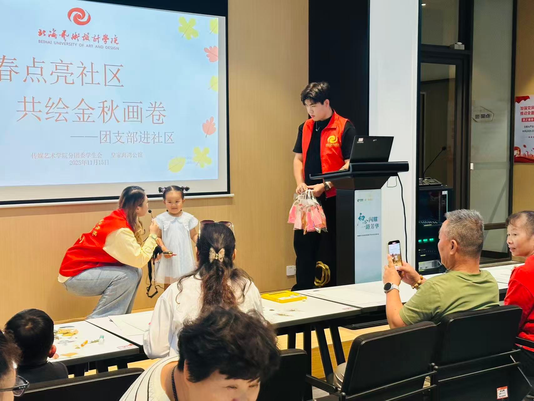 本次双主题活动的成功举办,是传媒艺术学院学子将专业所学服务于社会的一次生动实践。它不仅增强了学生的动手能力与社会实践能力,更深化了校社联动,用青春与创意共同绘就了一幅名副其实的“金秋最美社区画卷”。