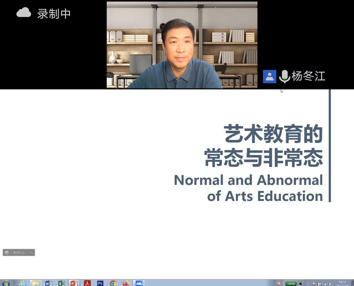 杨冬江教授围绕“艺术教育的常态与非常态”这一主题,分别从疫情对教育工作者的影响、如何发展当前的专业、艺术设计本身是一个创意三方面展开论述,深刻探讨如何应对冲击与挑战、如何唤醒意识、如何研究一门专业。