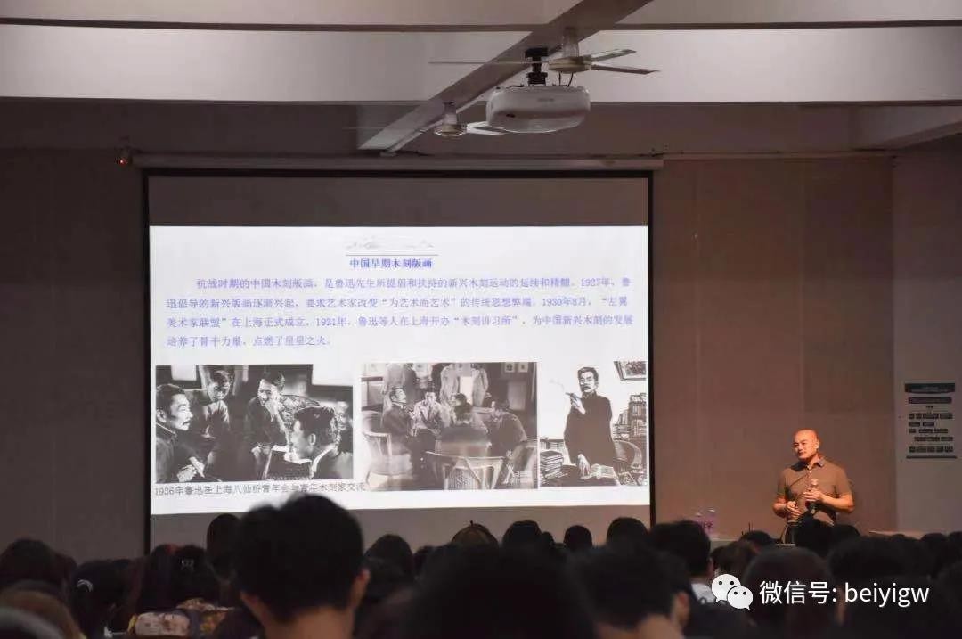2020年11月18日晚7:30于我校西校区伦理楼107,广西大学艺术学院张明学教授为我校师生带来了一场题为《抗战时期美术作品人文与审美》的精彩讲座。本次讲座吸引众多师生到场聆听。讲座由我校教务处副处长武鹏程主持。