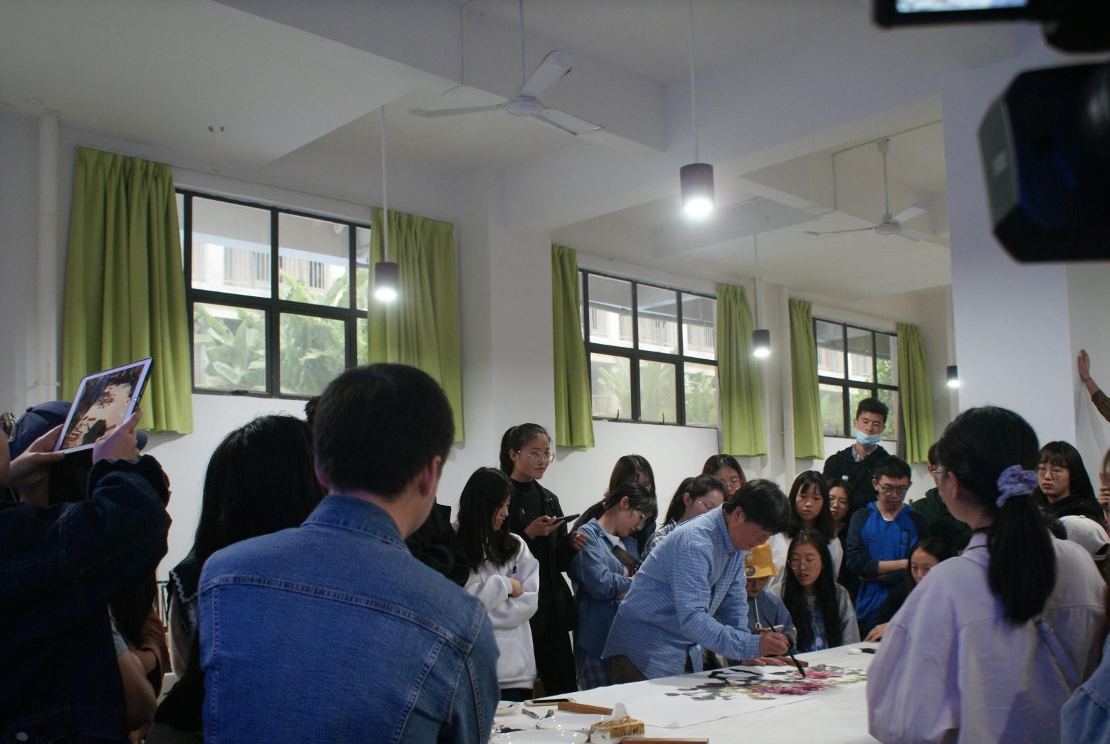 2020年11月15日下午,广西艺术学院艺术研究院副院长蔡智教授来到我校美术学院国画教室,为师生们进行国画现场创作示范。我校副校长胡胜、美术学院常务副院长龚为陪同出席活动,现场吸引了许多师生前来观摩学习。
