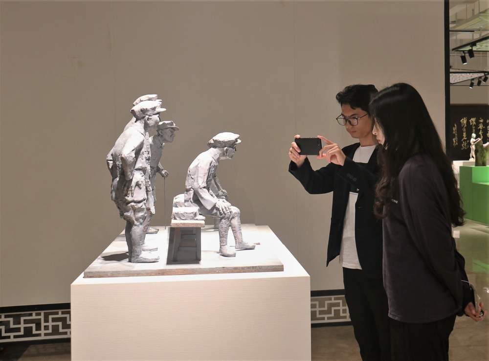 在师生的欢快讨论中本次活动接近尾声,一件件艺术品伫立在图书馆一楼,展示着专属于雕塑专业学生的魅力,本次展览开幕仪式圆满结束。(金凯靖 摄)