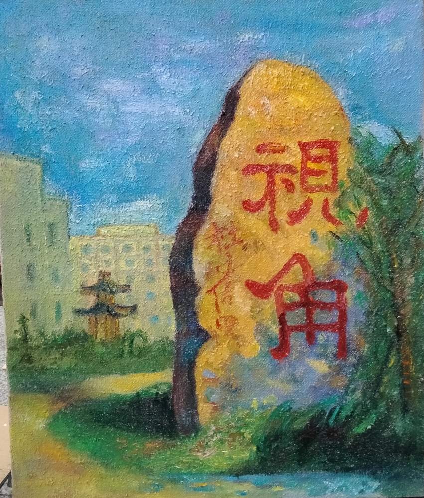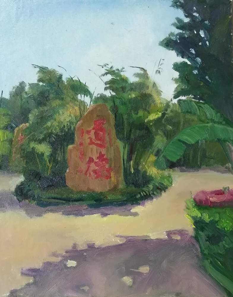 美术学院《风景写生》课程以校园风景写生为主要研究内容与实践方向,绘画过程围绕校园风景的色彩、构图展开,通过对校园选取适当的视角进行绘画表现,让同学们的目光更进一步的贴近校园,加深对学生对校园文化的理解。绘画过程既锻炼了学生们的构图和画面安排的能力,也培养学生对校园文化的认同情感,对绘画专业学生创作能力有很大的提高。比如学校的每一块石头的字样都有不同的涵义,通过写生实践活动,进一步加深了对北艺校园石头文化背后精神的理解。