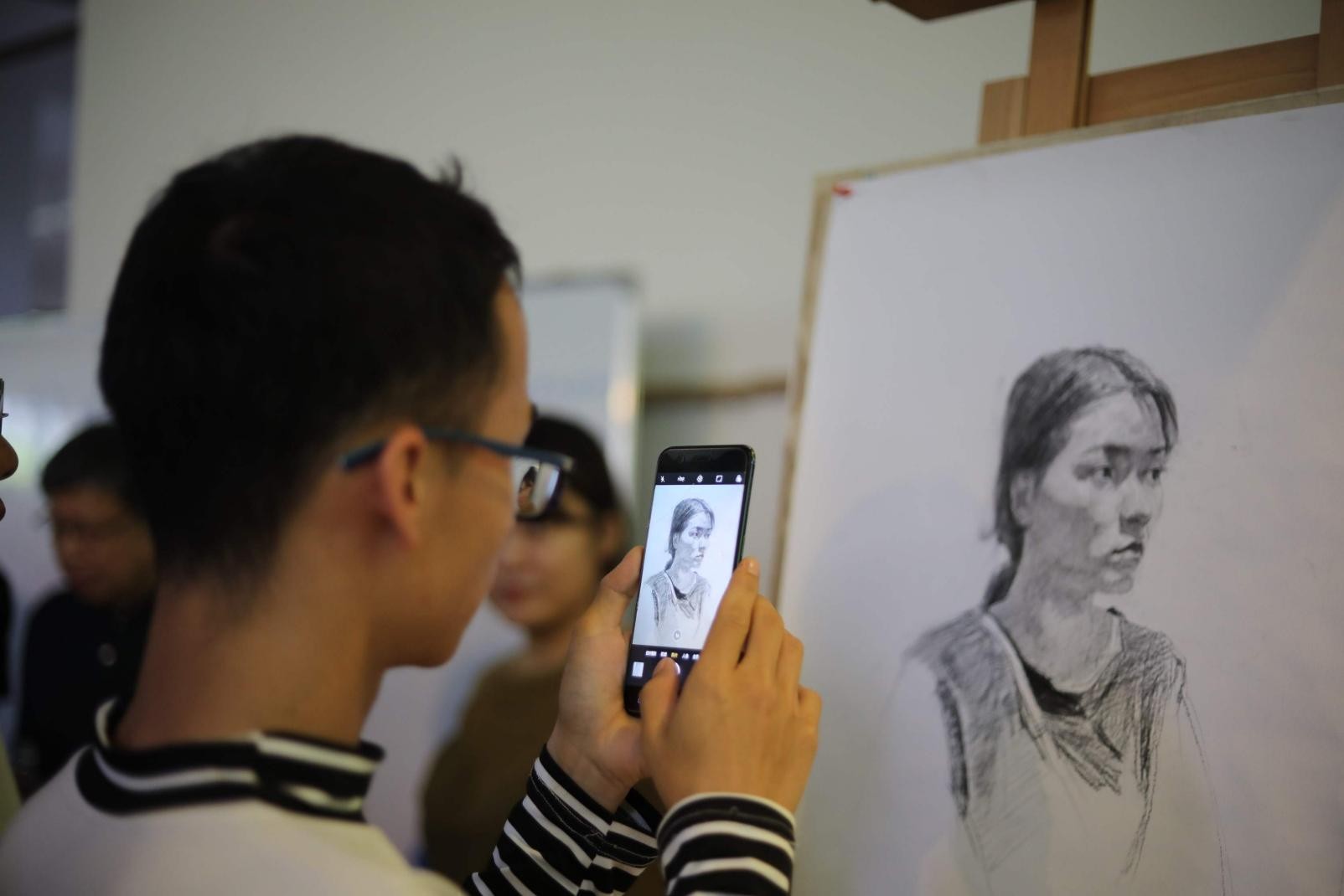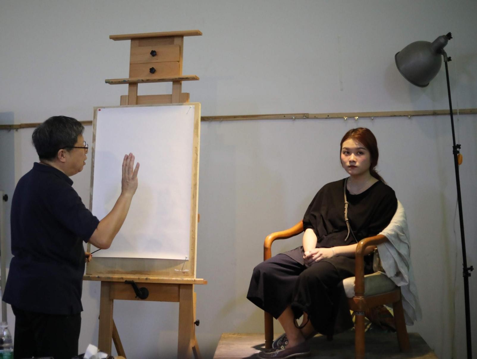 201964日上午八点,来自美国加利福利亚长滩州立大学的计宇教授莅临美术学院图书馆教学区进行现场作画示范。副校长胡胜老师、副院长唐海老师、副院长龚为老师、教研室主任张湘中老师、教务室主任肖玺老师、学工办副主任袁志伟老师、程宣睿老师以及美术学院全体绘画专业同学等参加了此次的教学活动。