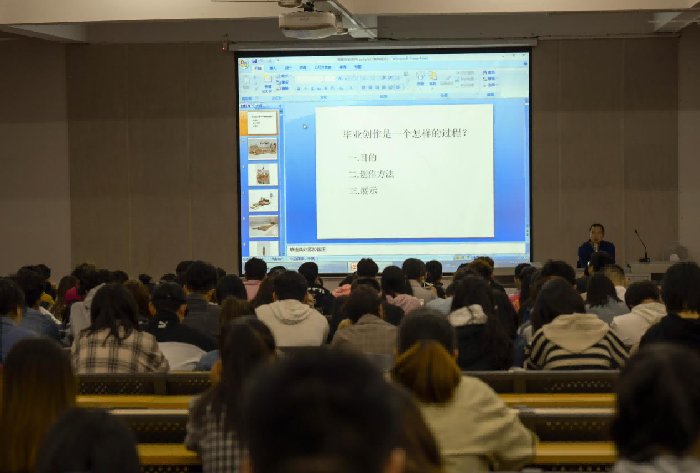 王卓老师指出做一件事之前,先要对其充分了解,而后充分的投入精力到这件事上,只有知道了其历史,才能更好的定位当下,通过一张张图片和详尽的讲解、分析,展现出雕塑毕业创作的重要性已经创作过程的魅力,让同学们对毕业创作有了更多深入了解。