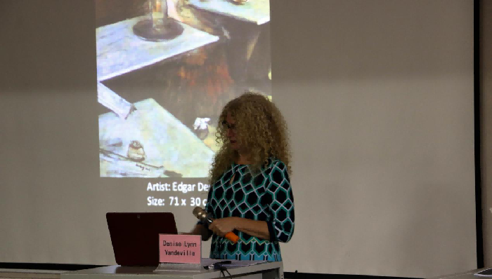 随后丹尼斯教授展示了詹姆斯·惠斯勒、居斯塔夫·库尔贝和爱杜尔·马奈这三位法国艺术家的作品,详细地做了讲解,并表示抽象不是存在于画作里面的,而是存在于思想中的。