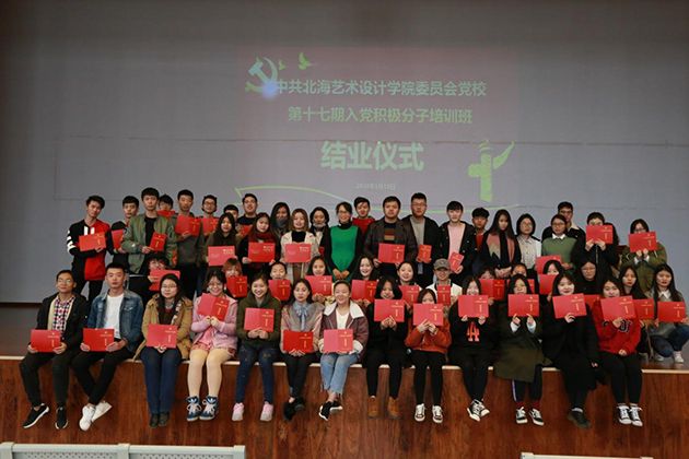2018年1月13日上午9时,我院十七期入党积极分子参加了中共北海艺术设计学院委员会党校在西校区大礼堂举行第十七期入党积极分子培训班结业典礼典礼上,动画学院数媒1601班学生武慧杰代表664学员作了交流发言; 我院58名入党积极分子均顺利结业,其中段海鹏、徐荛荛、何云峰、覃川东、刘莉辉等5名学员被评为党校“优秀学员”。