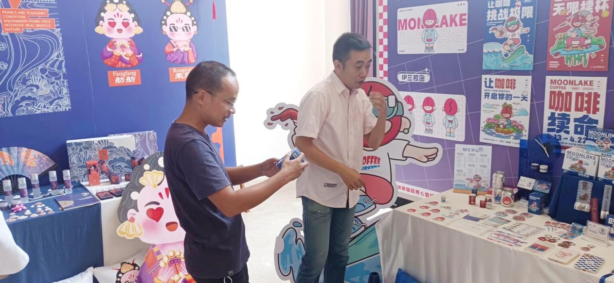(广西腾信食品有限公司海鸭蛋产品总经理劳总参观我校学生作品展览)