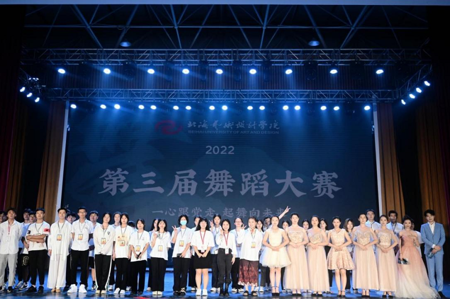 为深入学习党的二十大精神,加强舞蹈表演专业实践,推出一批宏扬中华文化、继承革命传统、反映新时代、新风貌的优秀舞蹈作品,丰富大学生的校园文化生活,2022年11月20,北海艺术设计学院在西校区大礼堂举办“一心跟党走,齐舞向未来”第三届校园舞蹈大赛决赛。