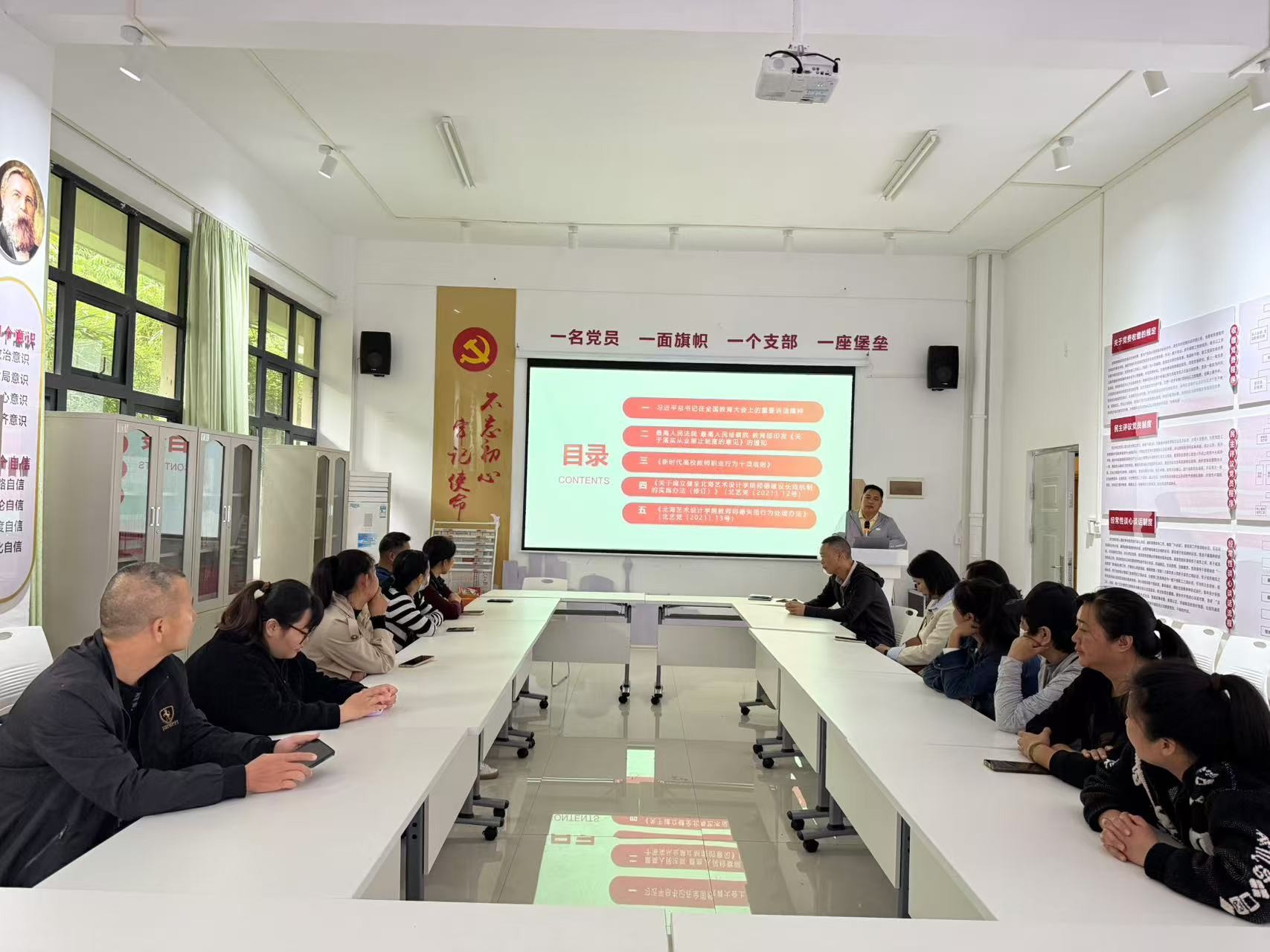 会上黄世华处长强调,师德和师风在教育领域的重要性,要深刻理解和认真贯彻党的教育方针,增强党性意识,恪守职业道德,维护学生和学校的形象,同时鼓励大家不断提高自身素质和业务水平,争取为学校的发展做出更大的贡献。(欧雯/摄)