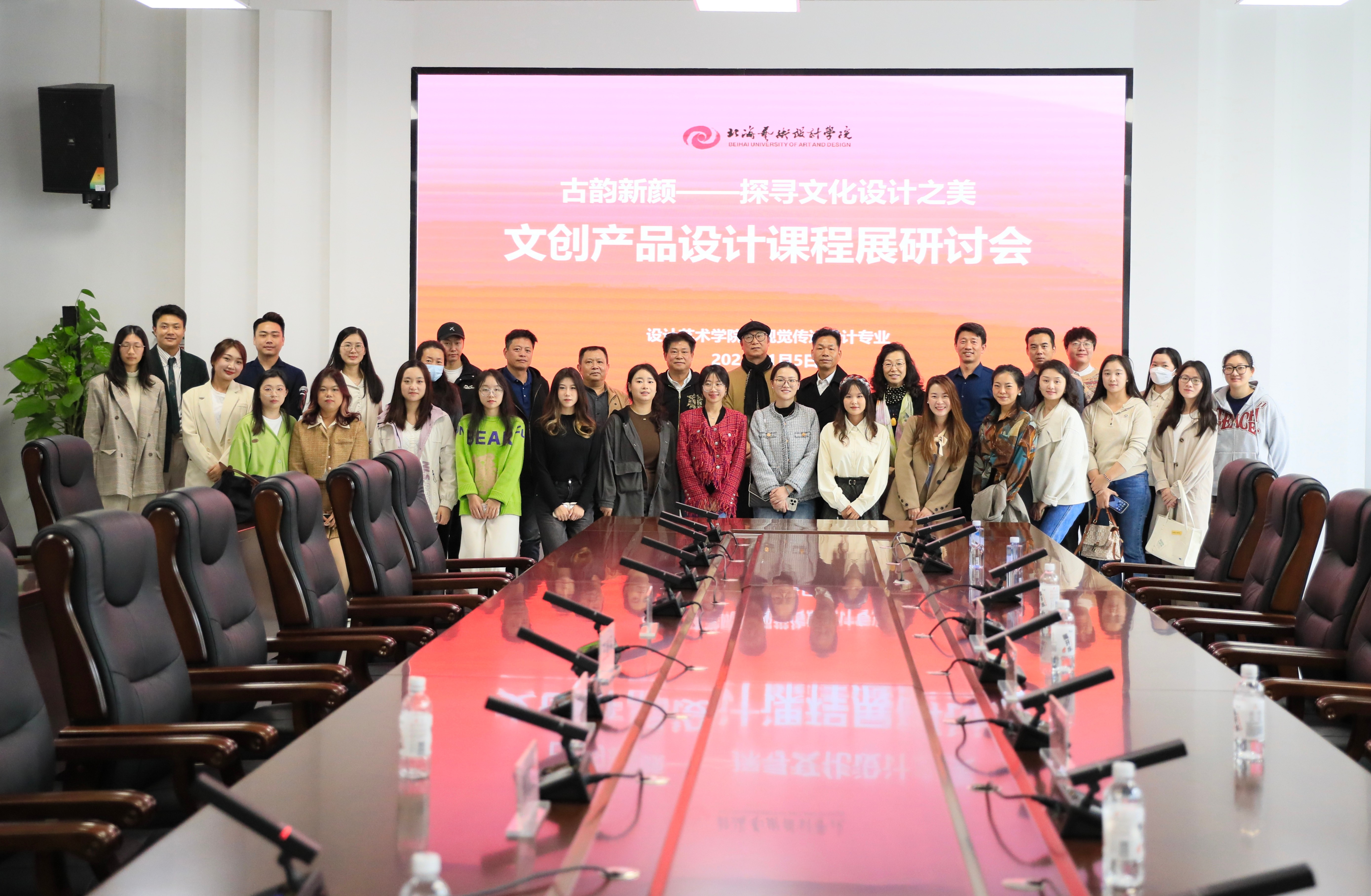 研讨会上,李林平院长就设计艺术学院人才培养模式和文创产品建设情况做了简要介绍。随后,与会嘉宾们相继发言,肯定了学生在文创产品设计课程中取得的成绩和进步,并鼓励同学们在未来的学习和实践中继续发扬创新精神,为北海文化创意产业的发展贡献力量。会议探讨了文创市场现状和企业用人需求状况,校企合作对接行业优秀资源,推动产学研深度融合,是将学科内容进行创新发展和创造转化的有利手段。希望通过此次活动,带领学生了解更加贴近社会真实的设计状态,推动设计艺术学院进一步落实产教融合协同育人、文创校企合作。