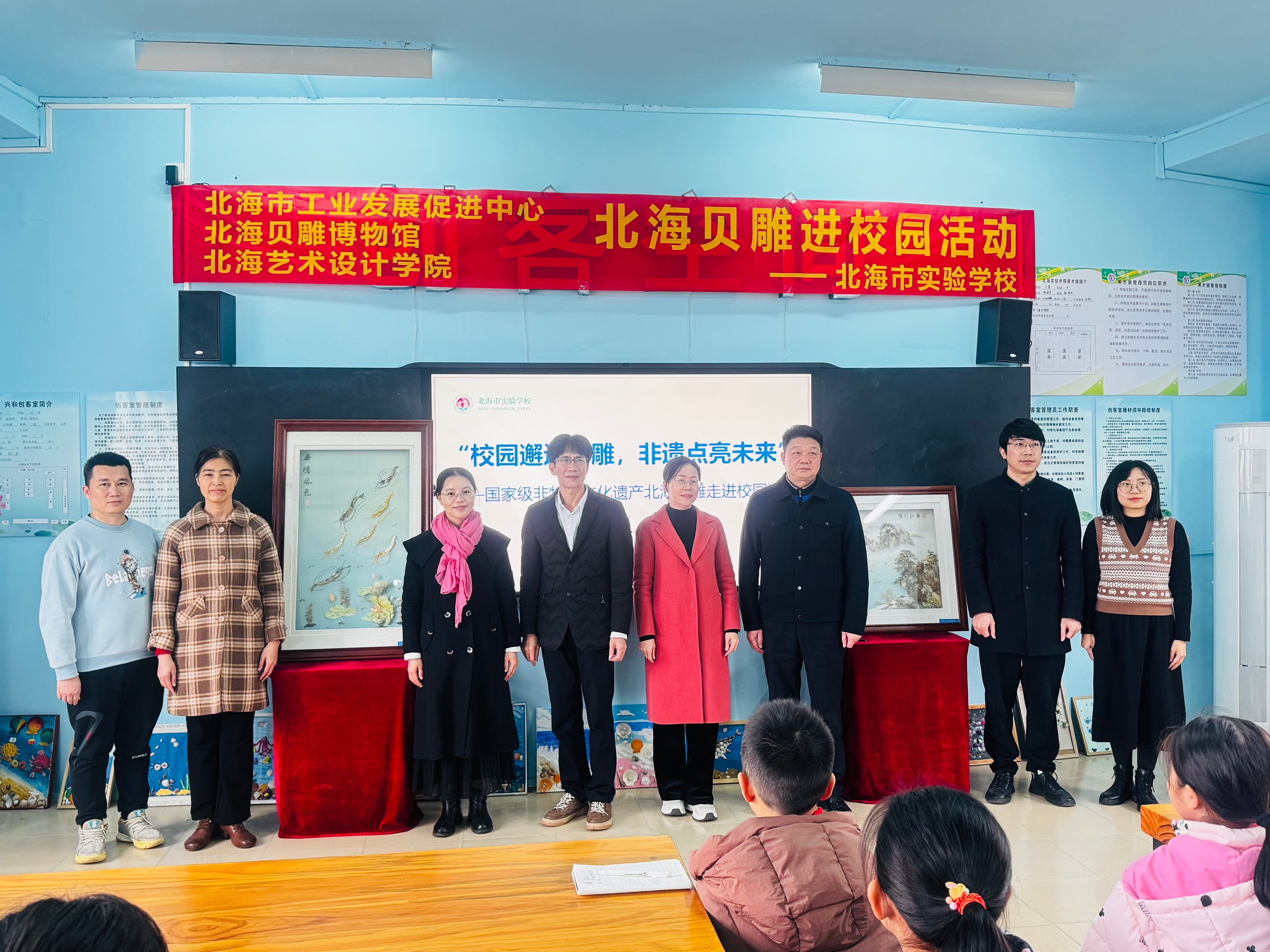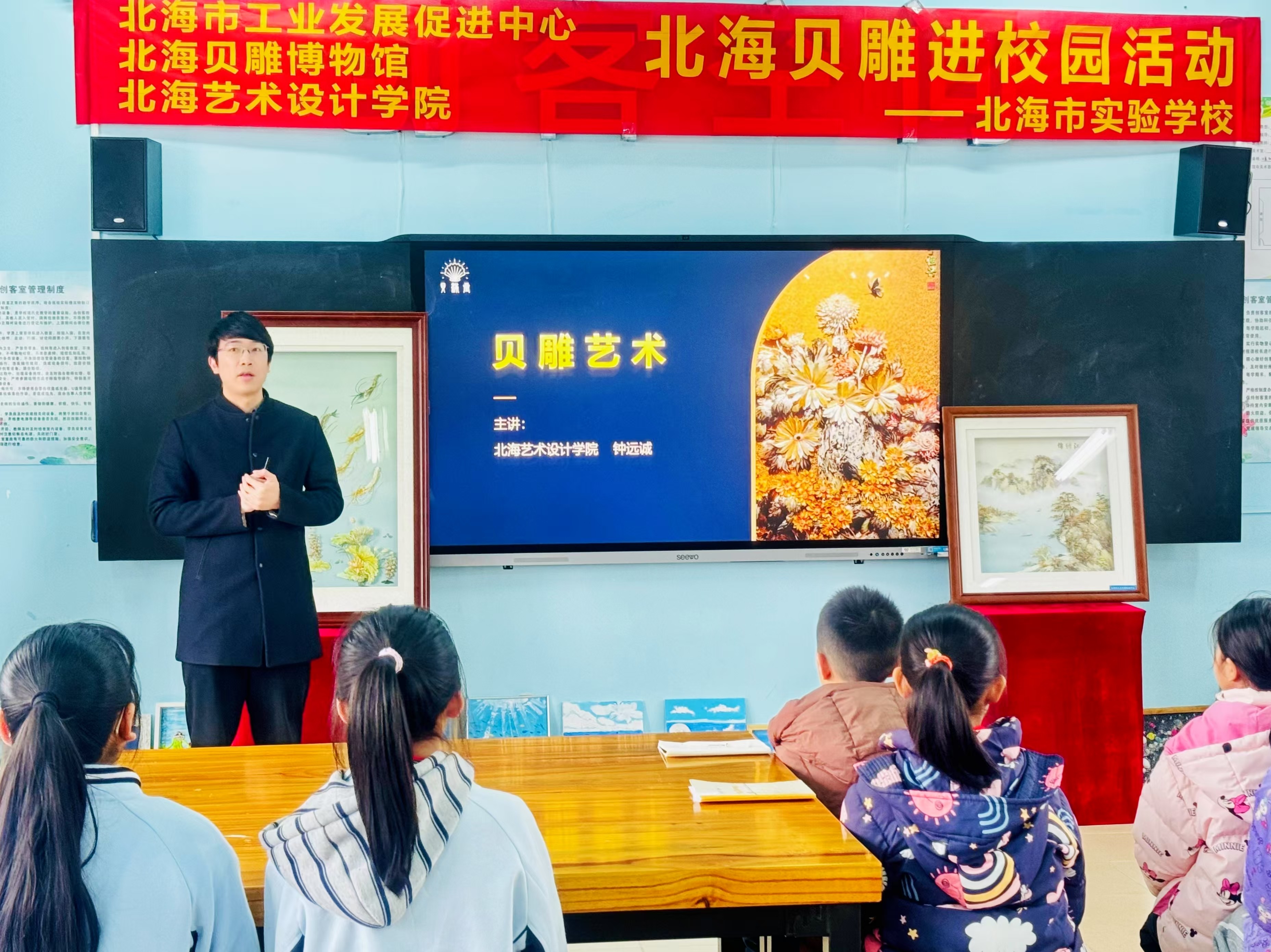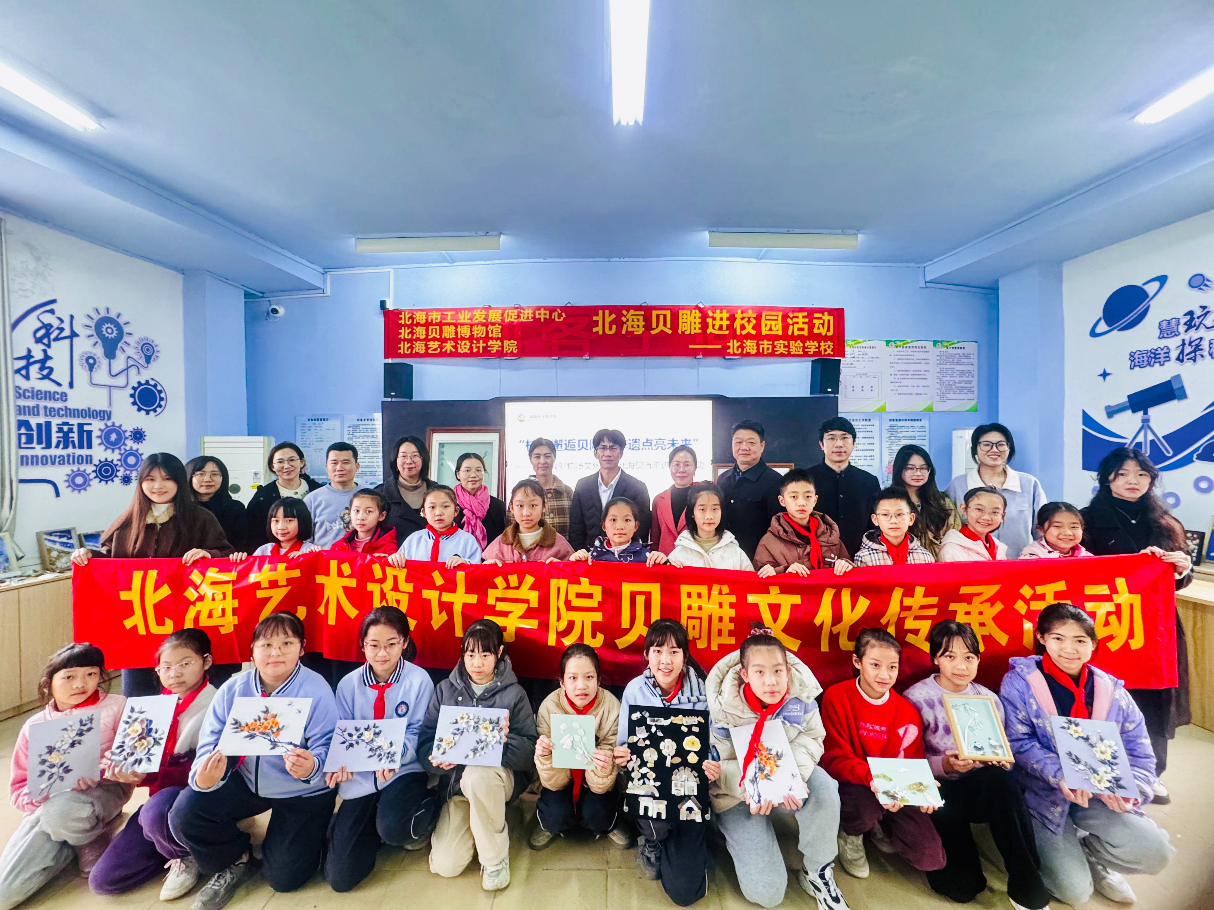为一步弘扬中华优秀传统文化,传承非遗技艺,由北海市工业发展中心、北海贝雕博物馆、北海艺术设计学院主办的“非遗进校园”活动于3月7日下午在北海市实验学校顺利开展。我校设计艺术学院产品设计专业钟远诚老师带领四名23级北艺学子积极参与其中,为这场文化传承与创新活动添砖加瓦,贡献自己的一份力量。
