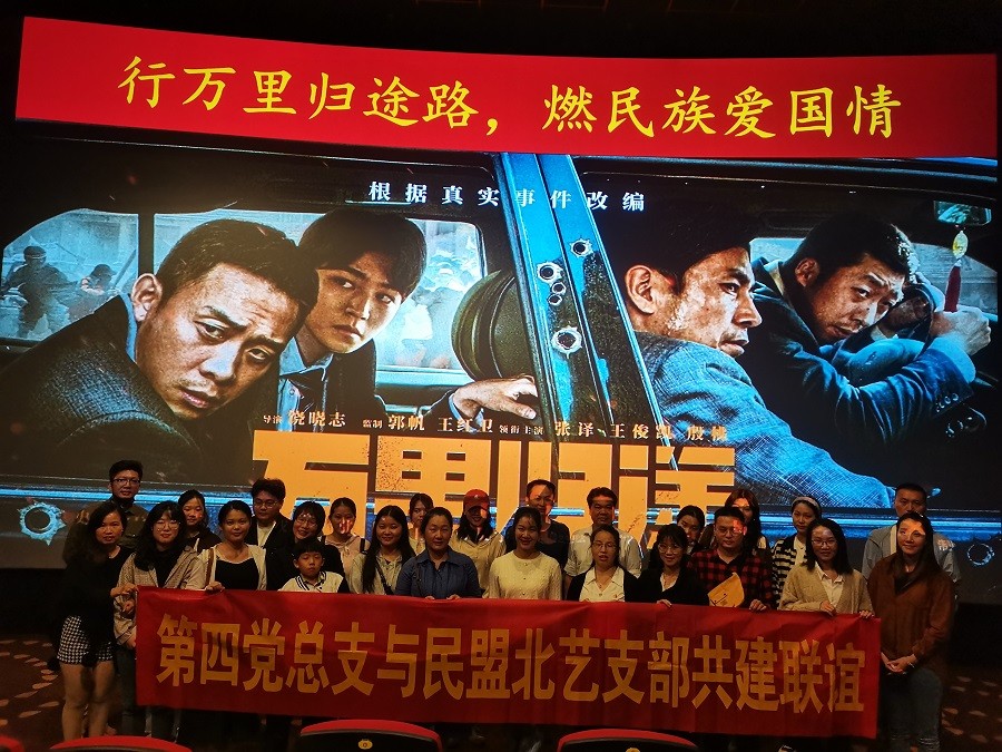 当天的共建联谊主题党日活动主要通过观看爱国主义题材影片《万里归途》开展。《万里归途》是根据真实事件利比亚大撤离改编的撤侨题材电影,讲述了我国外交官协助异国撤侨,在无情的炮火和瞬息万变的战局中,凭借坚定不移的信仰和对生命守护的责任,带领同胞走出了一条回家之路。影片展现出的外交官们不惧牺牲、逆向而行的使命感与信念,深深印在每一位观影党员、盟员的心中。