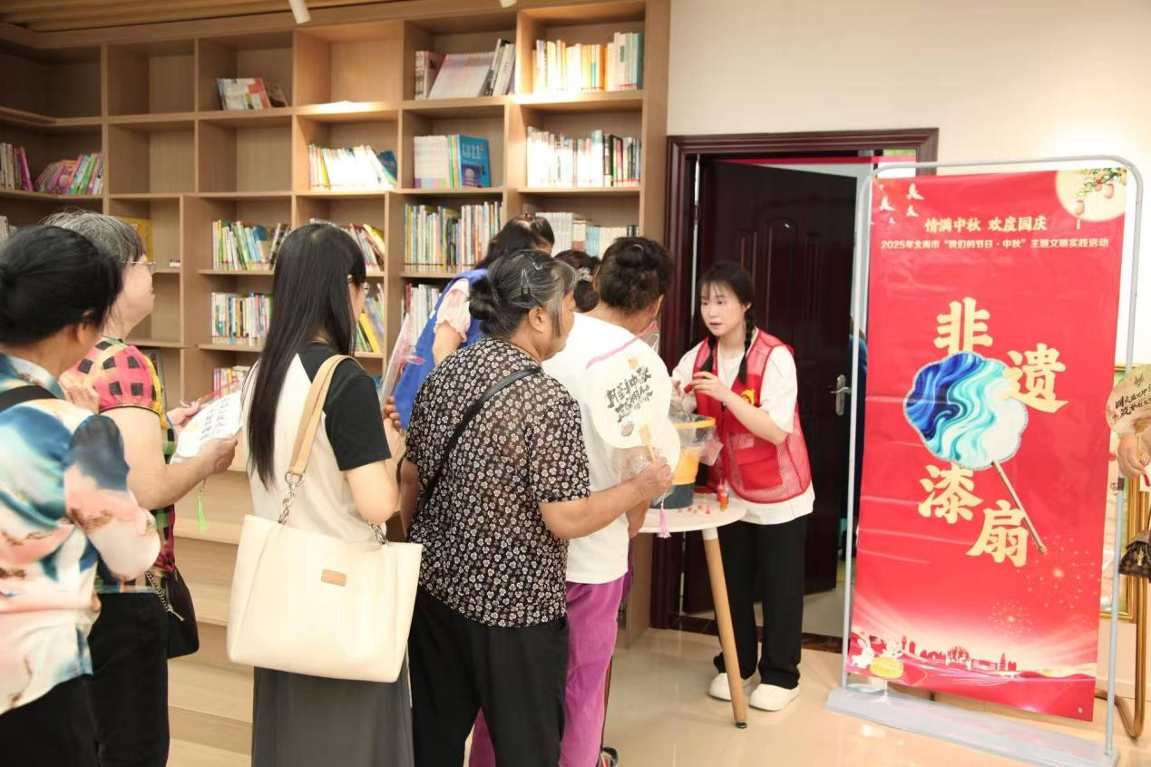 2025年北海市“我们的节日·中秋”主题文明实践活动于9月29日上午在茶亭路社区热闹开启。本次活动以“情满中秋 欢度国庆”为主题,文学院志愿者全程主导服务,通过非遗展演、手工体验、趣味互动等丰富形式,为社区老年居民精心呈现了一场融合文化底蕴与节日温馨的双节盛宴。