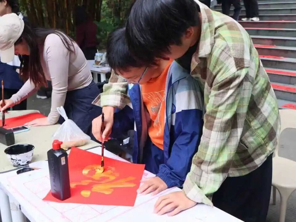 书法体验区,大家以笔为媒,以字为介,在笔墨晕染中亲身感受汉字书写的乐趣。